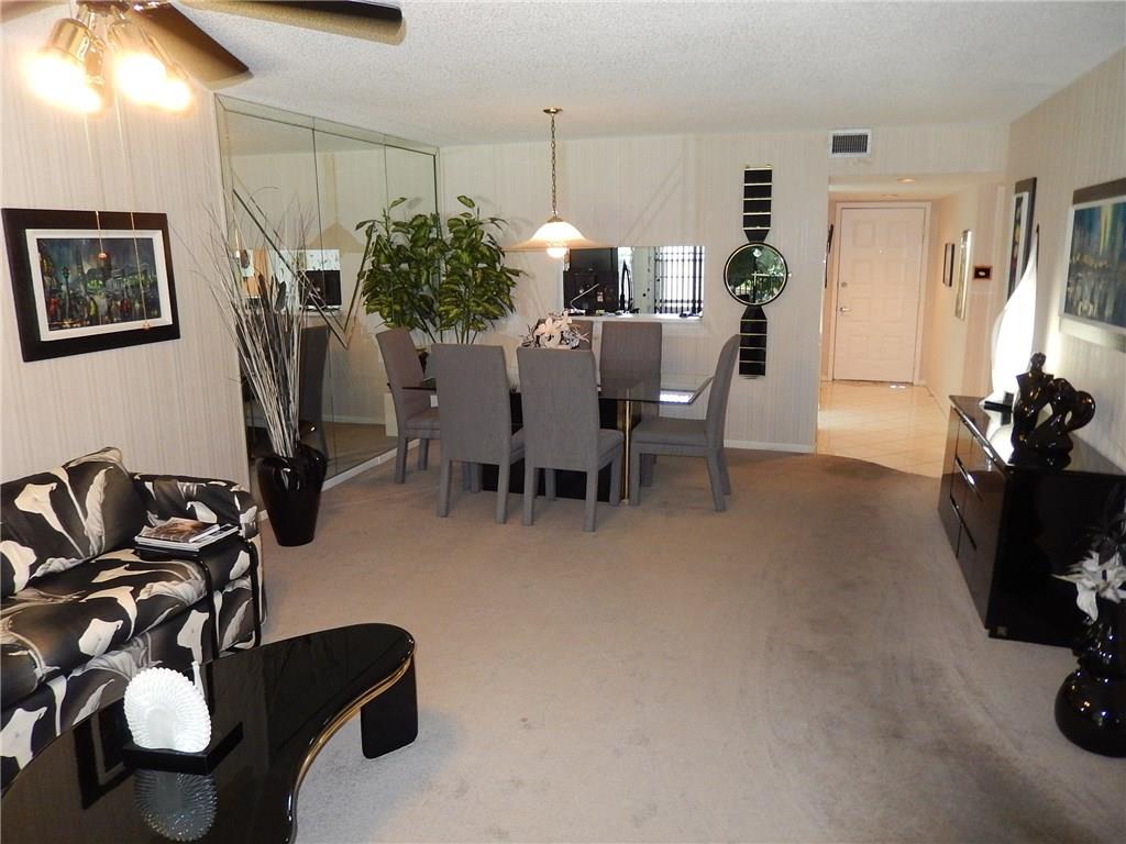 High floor with the best view. Great views of the golf course greens and lake together. Very peaceful setting to enjoy a cup of coffee or just relax. Open floor-plan with an eat-in-kitchen. Refrigerator and range are fairly new. Washer and dryer in your unit for your convenience. Enjoy all the amenities such as the clubhouse with shows, restaurant, pool, tennis, and golf. Feel extra secure with security patrol and gated community.
