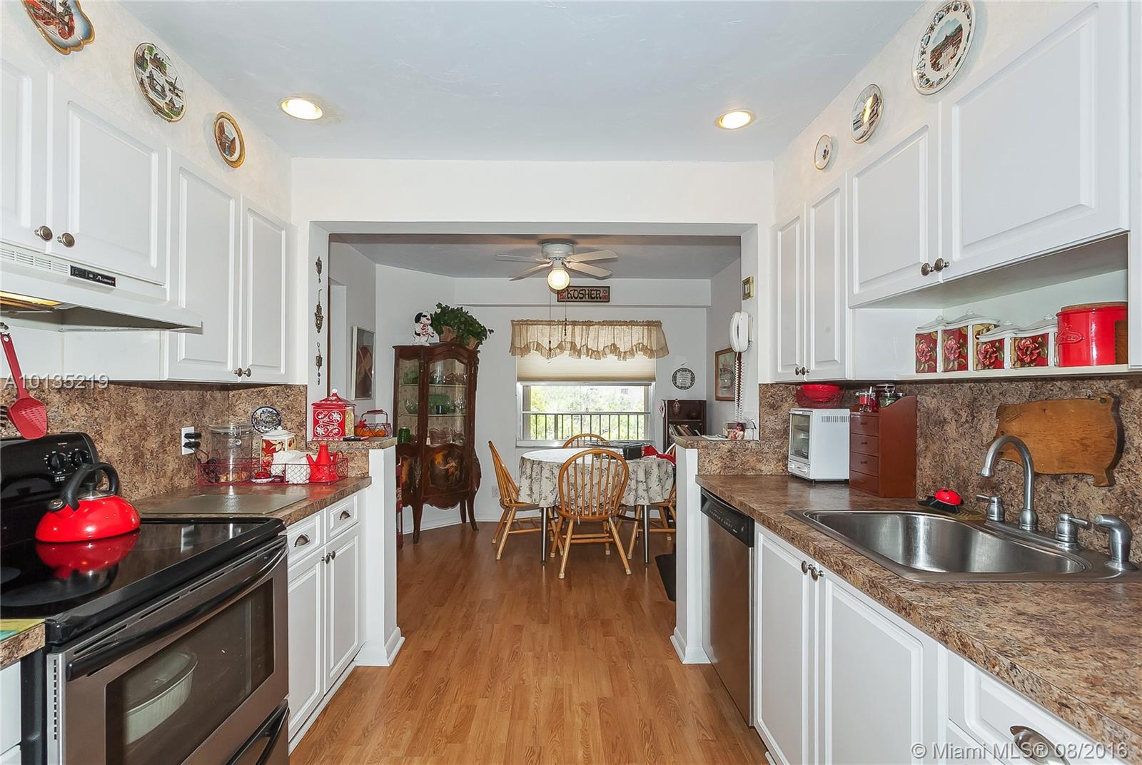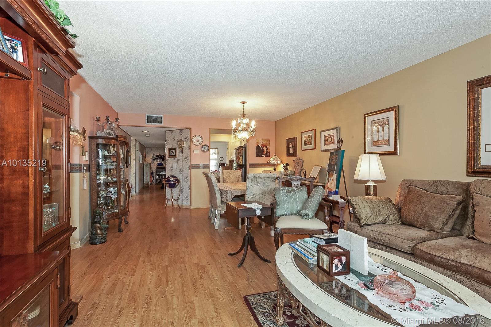 Rare Corner S Model. Spacious, bright flowing floor plan. Gorgeous remodeled kitchen with white cabinetry and stainless appliance package. Cozy breakfast area. Laminate in living areas. Large dining/living room. Both bedrooms are HUGE. 2nd bedroom has a very large walk-in closet (storage area) with built ins. Bathrooms are in perfect condition. Enclosed patio for additional space. Century Village is located in the heart of Pembroke Pines close to shopping, highways & restaurants. Many amenities.