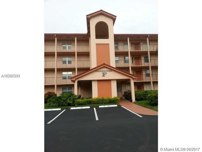 Well Maintained 1 bedroom 1.5 bathrooms, 4th floor condo with beautiful golf & lake views in Century Village! Real wood floors thru-out & ceramic tile in the kitchen & foyer areas, kitchen with granite countertops & glass backsplash, large bedroom, washer/dryer inside the unit & nice screened balcony overlooking the golf course & lake. Quiet building with lots of amenities to enjoy: tennis, golf course, pools, gyms to work out in, theater, free bus transportation and much more. Unit in the desirable Cambridge Building F. Best views in Century Village. This condo will not last long. 55+ Community!!