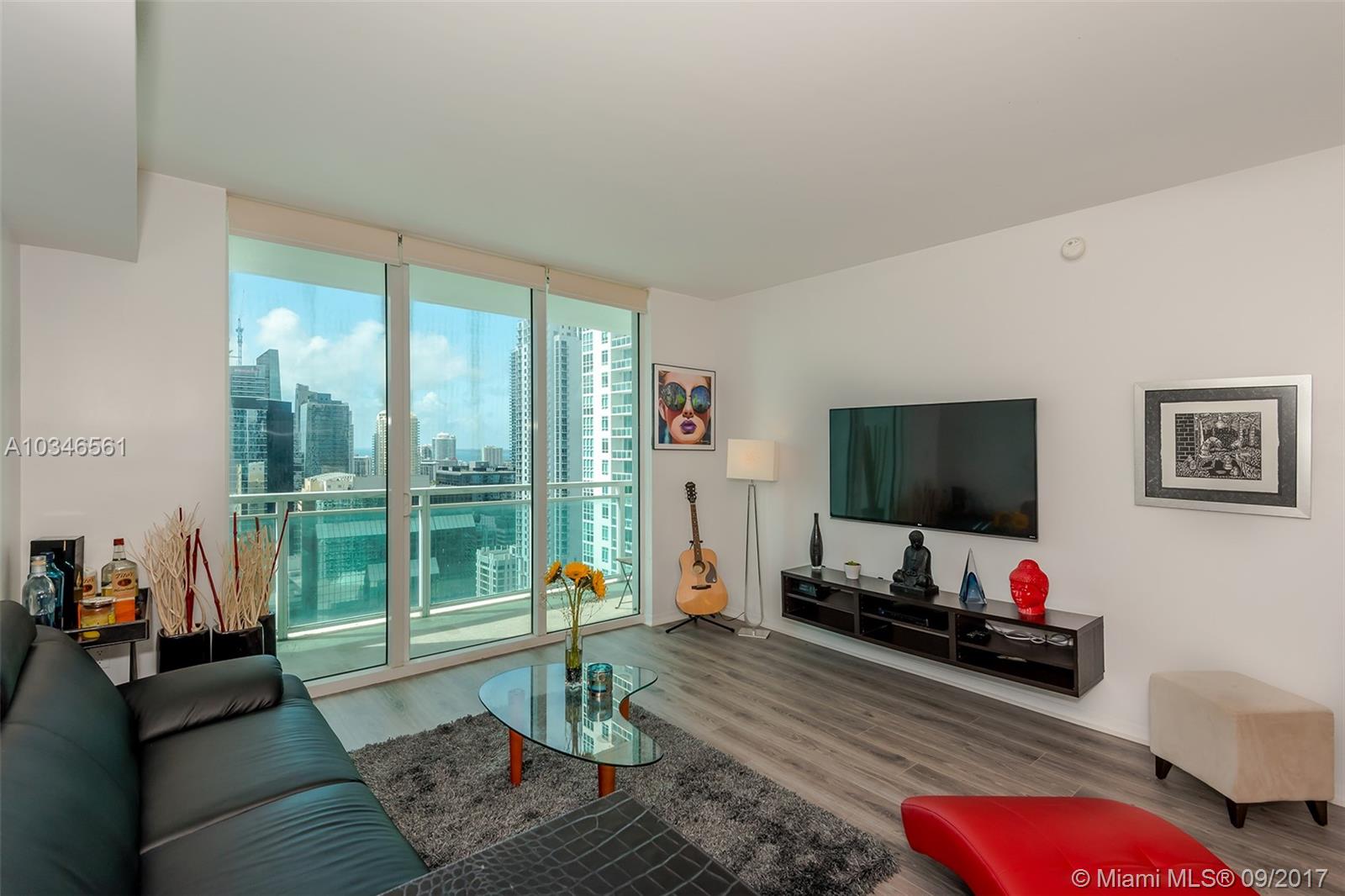 Great opportunity to live in the Heart of Brickell, unit features beautiful water views and has new laminate wood floors. Very cozy and within walking distance to great restaurants and office buildings. You can live close to work! The building features great amenities, 2 pools, state of the art gym, steam rooms, 24hs valet, and security. Easy to show please text listing agent for appointment.