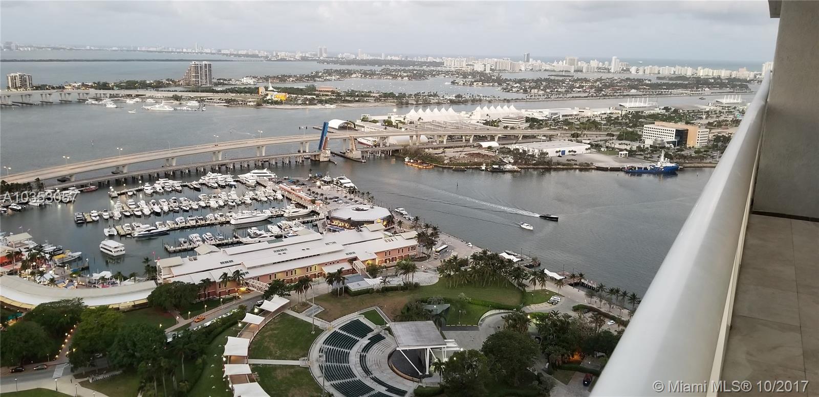 High floor corner unit with 270 degrees views of Miami! Not available on lower floors! Ocean, bay, city, pool, sunset, see it all! 400 sqft balcony! Freshly painted with upgrades and polished marble floors. Unit is in outstanding well maintained clean condition.