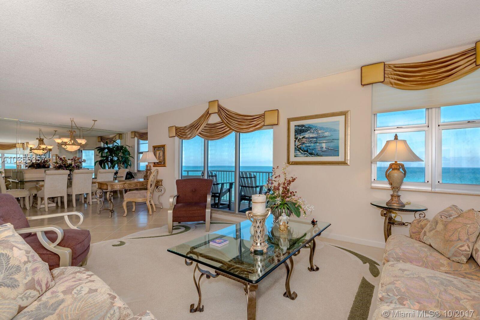 DIRECT OCEANFRONT 3 BR 2.5 BATHS UPDATED CORNER UNIT OVERLOOKING THE OCEAN AND THE POOL. BEAUTIFUL S/E EXPOSURE SUN ALL DAY ON TERRACE! *HURRICAINE PROOF WINDOWS/DOORS* LARGE DIAGONALTILES,UPDATED KITCHEN/ BATHROOMS,CUSTOM WINDOW TREATMENTS AND MANY EXTRAS. THIS UNIT IS IN PRISTINE CONDITON,TURNKEY.FURNISHED AND APPOINTED IN EXQUISITE TASTE. MASTER BR- ENSUITE BATH,LARGE CLOSETS, GUEST BEDROOM- FULL BATH,GUEST POWDER ROOM. A/C, CABLE, HOT WATER, PARKING,PLUS INC IN MAINT. BEST COMPLEX SUPERIOR AMENITIES!