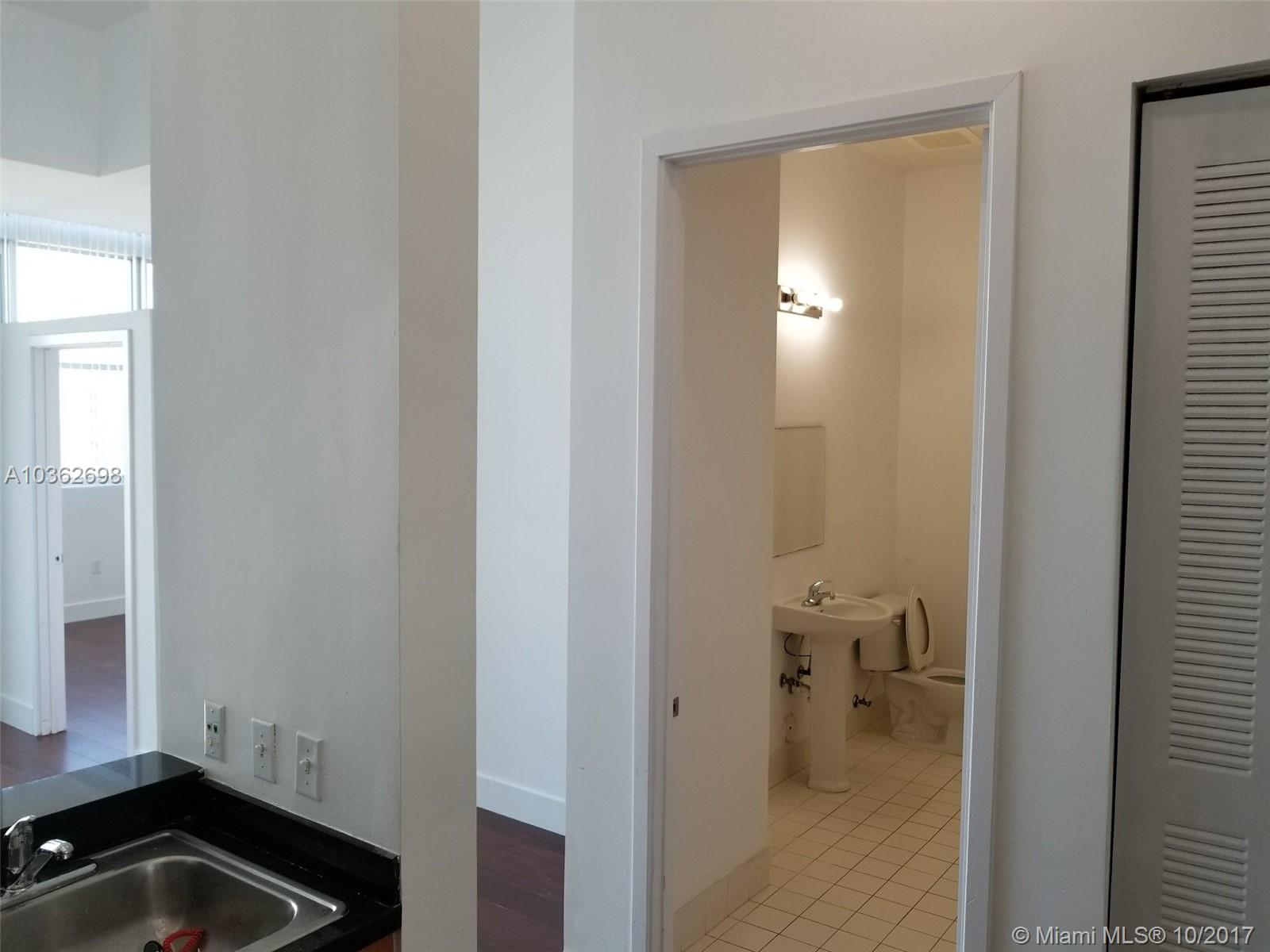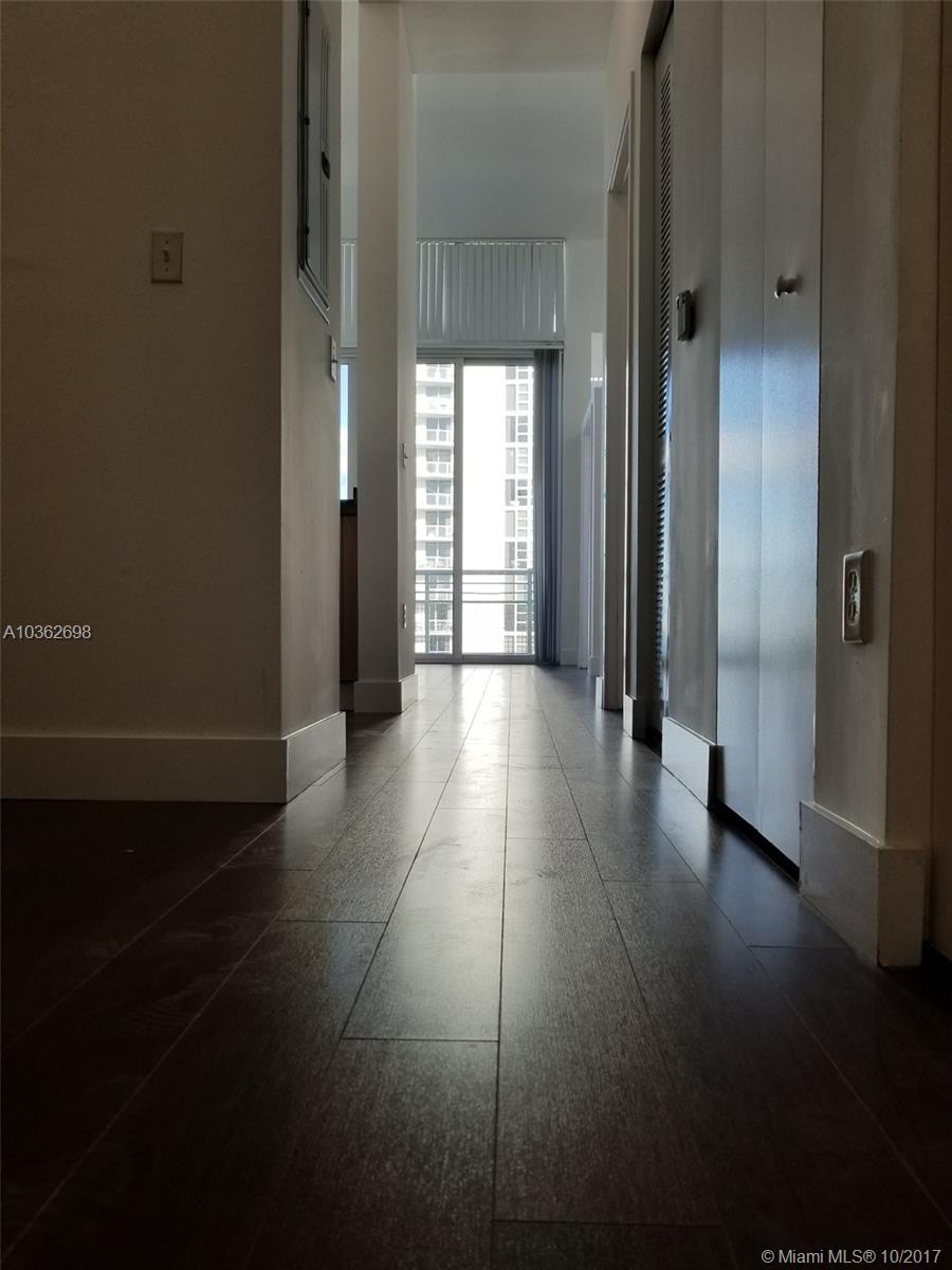 1/1 and 1/2 Bathrooms + Den Pent House with stunning views! 1 full (with tub) and 1 half (Very spacious) bathrooms. Loft concept bedroom with dividing low wall and door. Den for extra space. Kitchen with granite counter tops and modern cabinets, stainless steel appliances and Washer&Dryer in unit. Brand new Laminate flooring through the unit, and balcony facing East with stunning views of the bay, Port of Miami and city skyline. Unit with high ceilings as it is a PH. Building with Pool, Jacuzzi, Sauna, Gym. Ideal for investors (Corporate buyers Ok, and can lease right away) as well as end users.