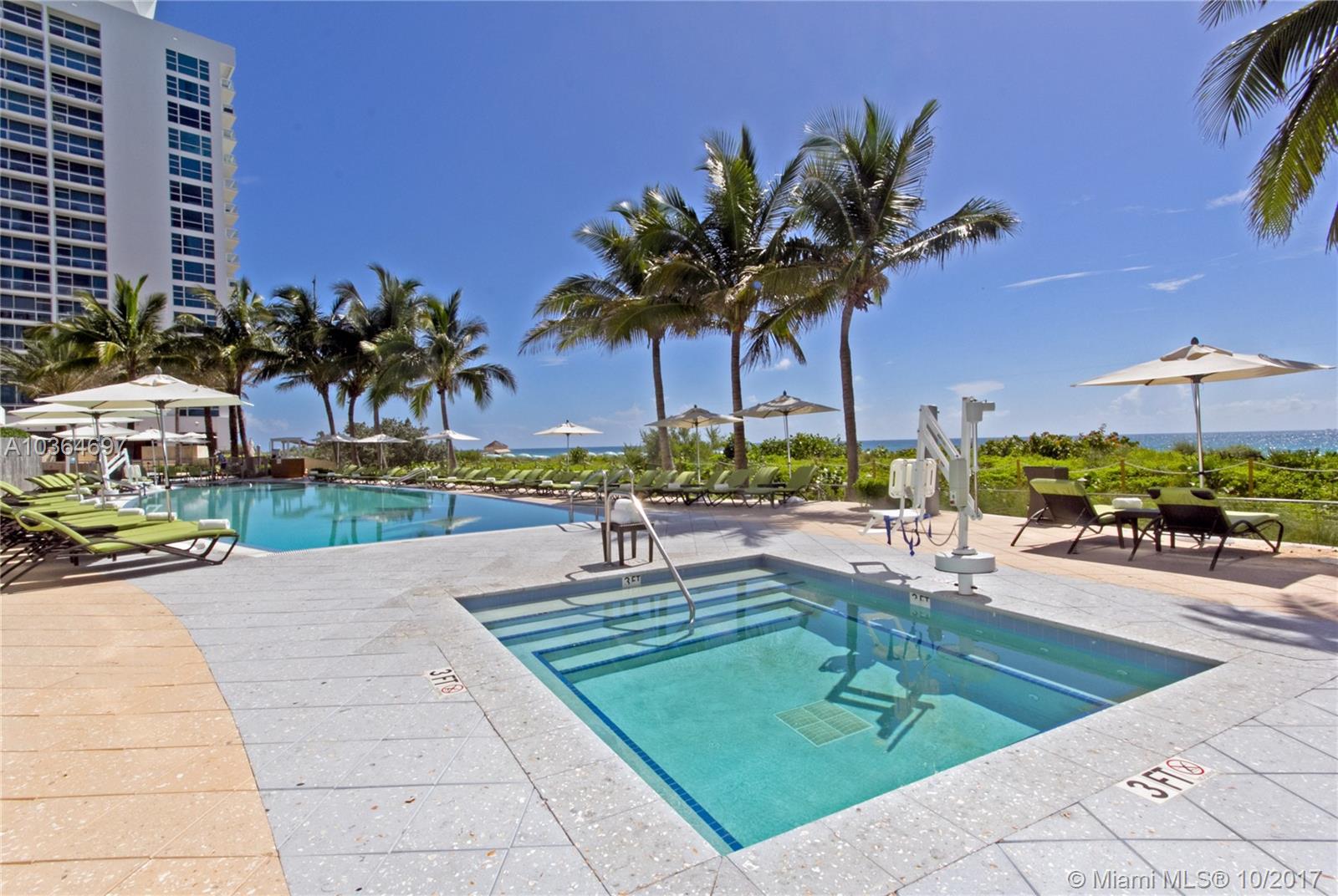 Priced to sell - Rarely offered 1 bd, 1 bth, 1 half bth DIRECT OCEAN VIEW unit at Carillon Miami Wellness Resort, a premier oceanfront luxury property. Luxuriate in South Florida largest spa and thermal experience, 70,000 sq ft fitness-spa center. Classes offered 7 days a week from morning until evening; 4 pools; salon; restaurant, cafe, bar, 24hr sec, wellness staff. Your unique opportunity to own a premium direct ocean view unit in this price range. Rejuvenate your body and soul at your Carillon home.