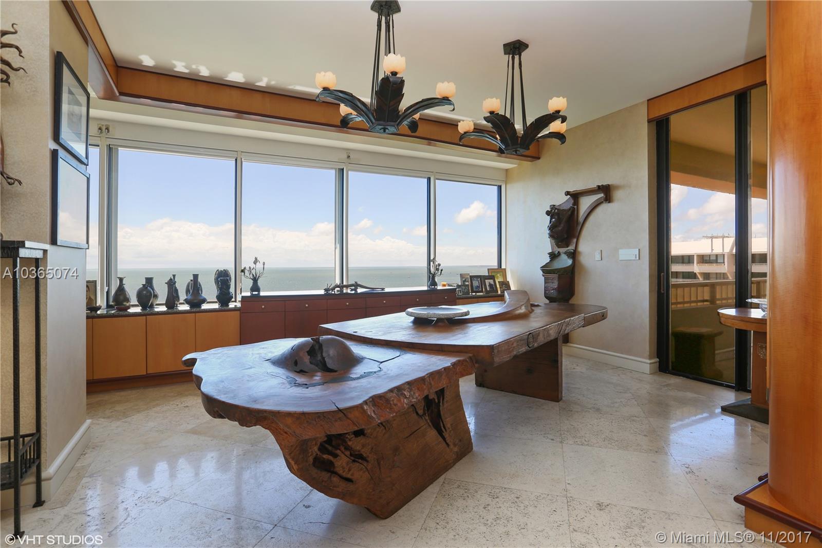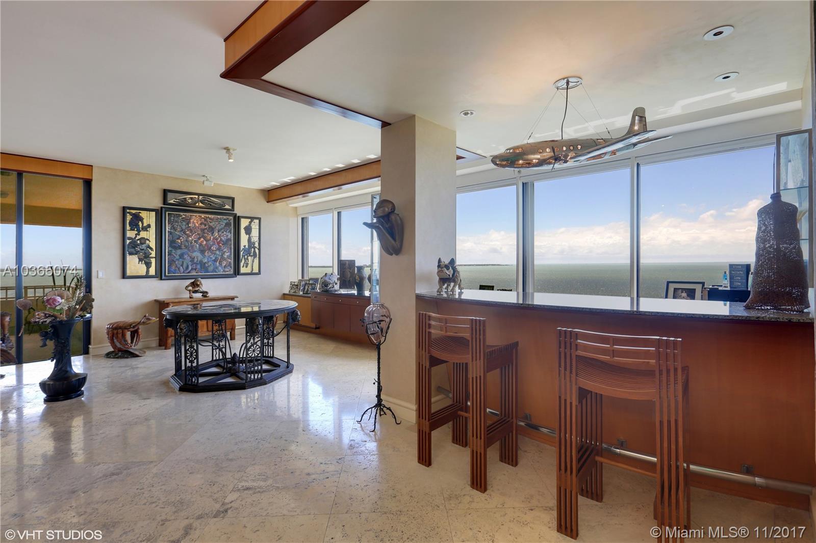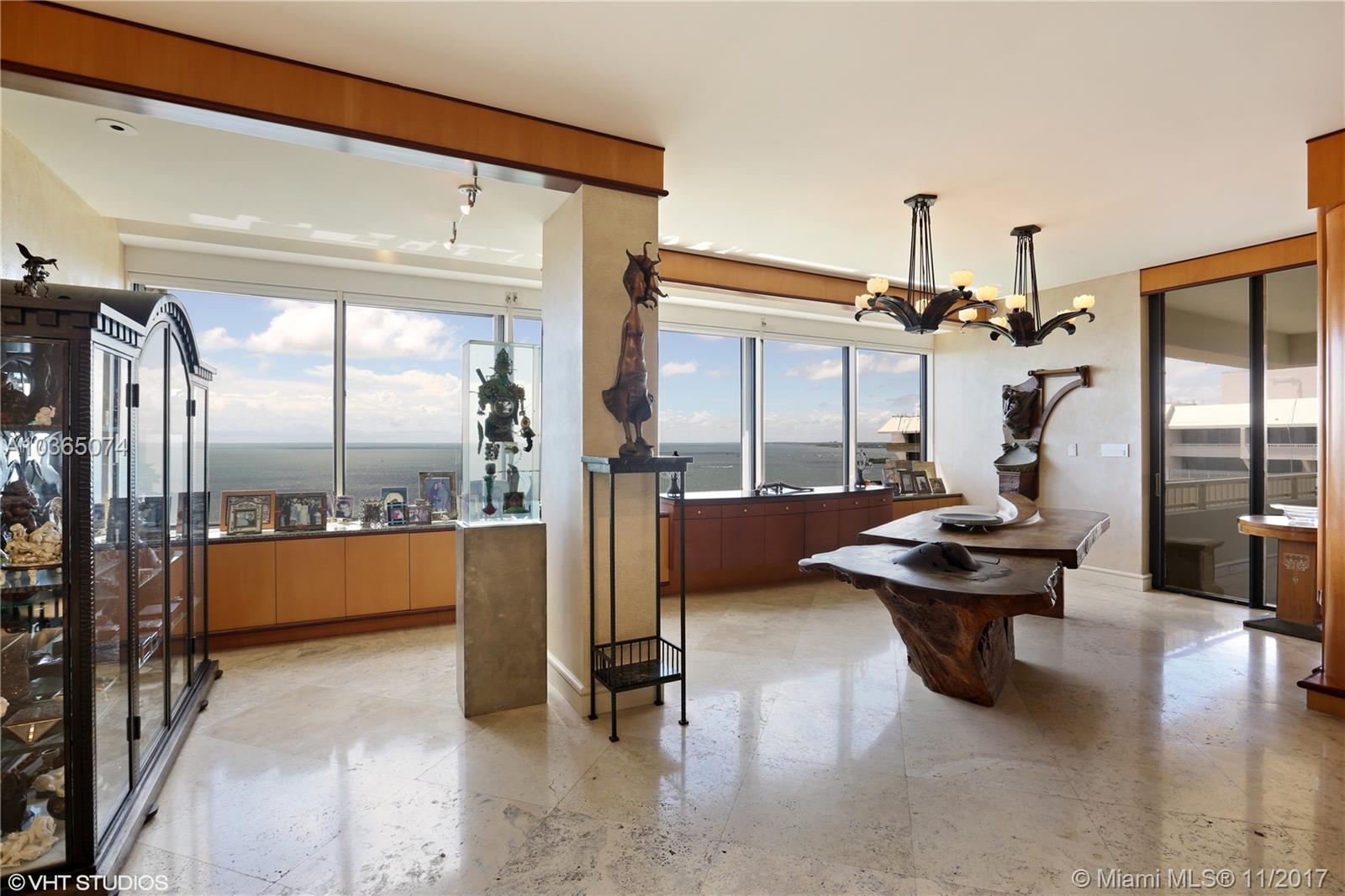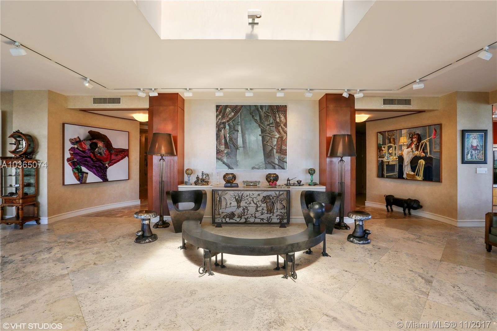 Rare opportunity to own a double PH at Grove Isle. This 4 bed/3.5 bath with over 5,000 SF is an Art lovers dream. This residence offers expansive balconies, unobstructed views of Biscayne Bay, Key Biscayne and Downtown Miami, 9.5 ft. high ceilings, great lighting & lots of wall space. The open kitchen has granite counters, stainless steel appliances and an eat-in breakfast room. Other features include a full size laundry room, custom built-ins, a sky-light, and stone floors throughout. The photos speak for themselves!