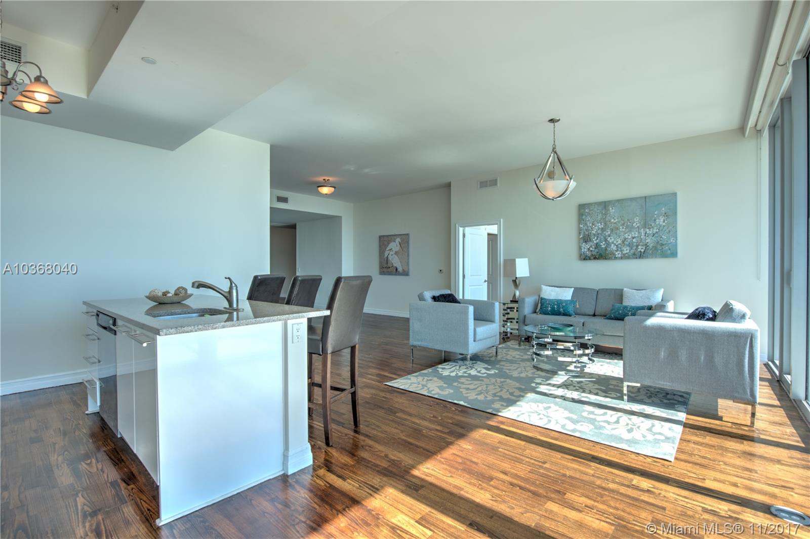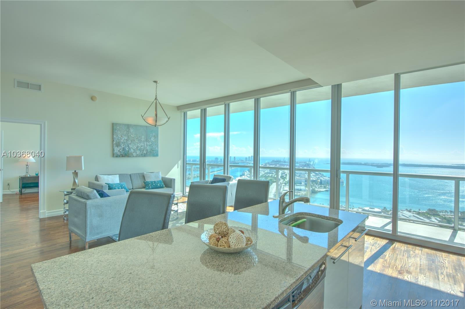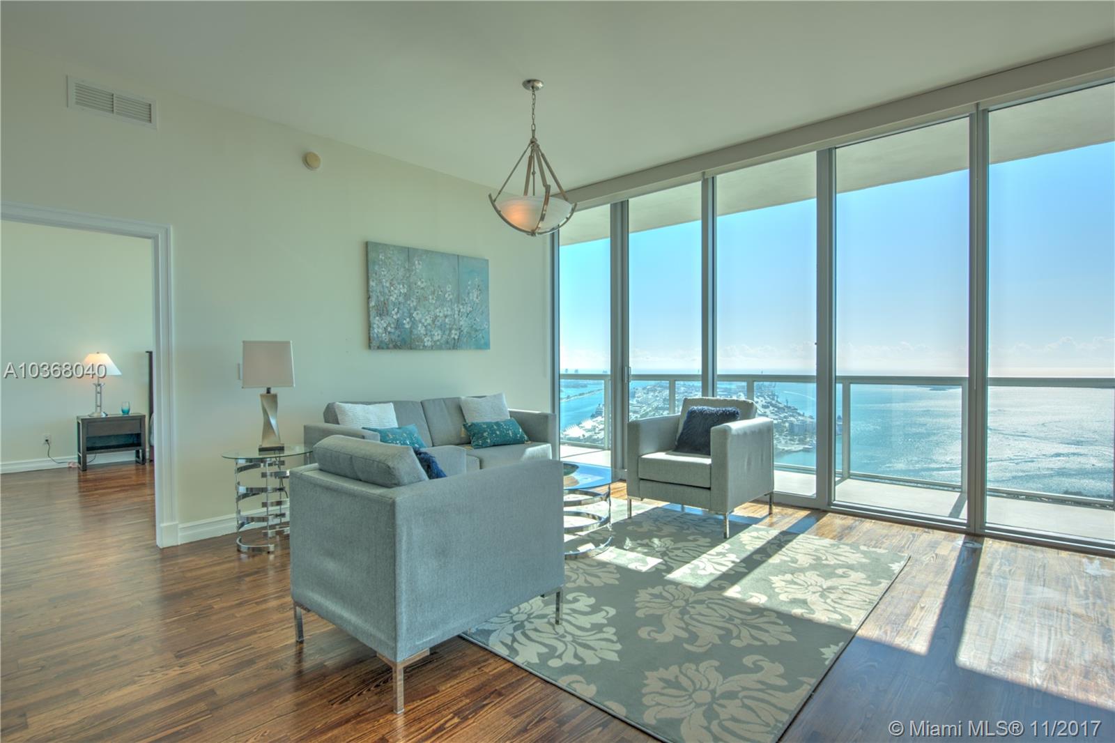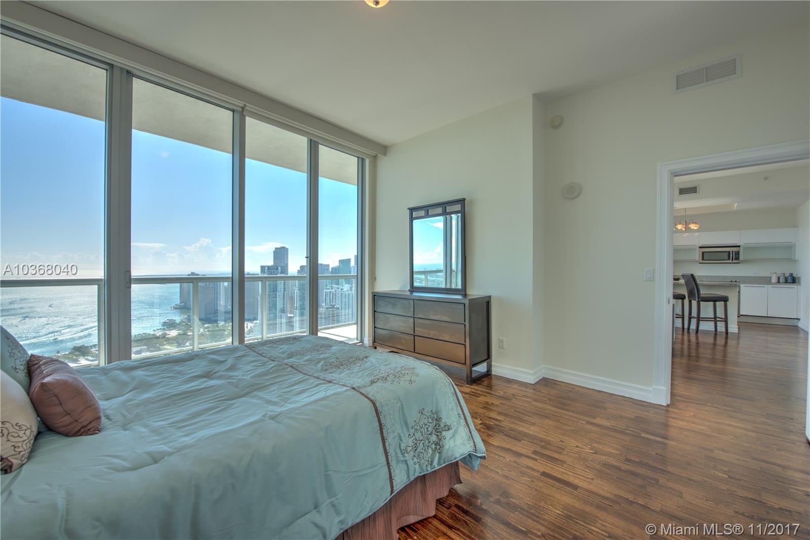 Own one of the Best Views in Miami!!! An incredibly spacious 2 Bed + Den/ 2.5 Bath condo at Marinablue with 1,748 interior square feet, 10-foot high ceilings with floor-to-ceiling windows, 223 square foot balcony spanning the entire width of the unit, stainless steel appliances, wood floors in the living areas, marble floors in the bathrooms, washer/dryer, and breathtaking views of the bay, city, and ocean from the 54th floor. Walk-in closet in both bedrooms. The largest non-penthouse unit in entire building. One-of-a-kind floor plan! Includes 1 assigned parking space located on 4th floor + storage cage. Building amenities include: sunrise & sunset pools, hot tub, fitness center, business center, sand volleyball court, BBQ, 24-hr concierge, 24-hr valet parking, bike storage, and club room.
