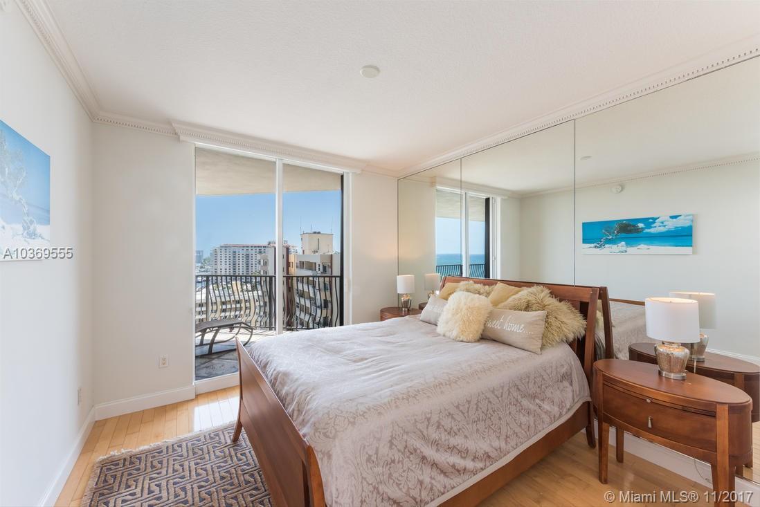 2 bedroom + den and 2.5 bathrooms, panoramic view to the ocean, intracoastal and city. Private elevator to private foyer. This model has the largest balconies in the building. Great kitchen with granite counter tops. Amazing marble floor. 24 hour security and super friendly staff will make you feel right at home. Gym, pool, SPA, valet, 2 pets any size welcome. Full service luxury building located next to the beach and Las Olas