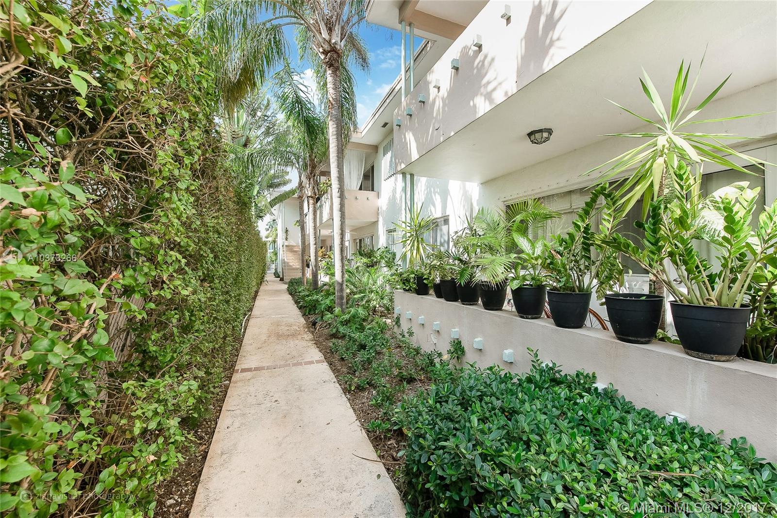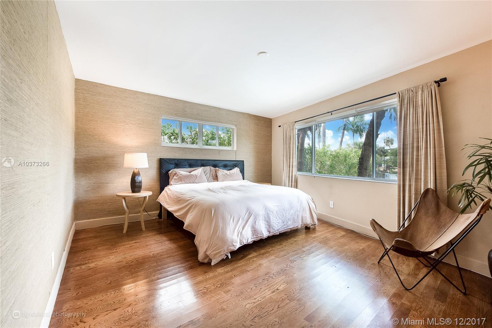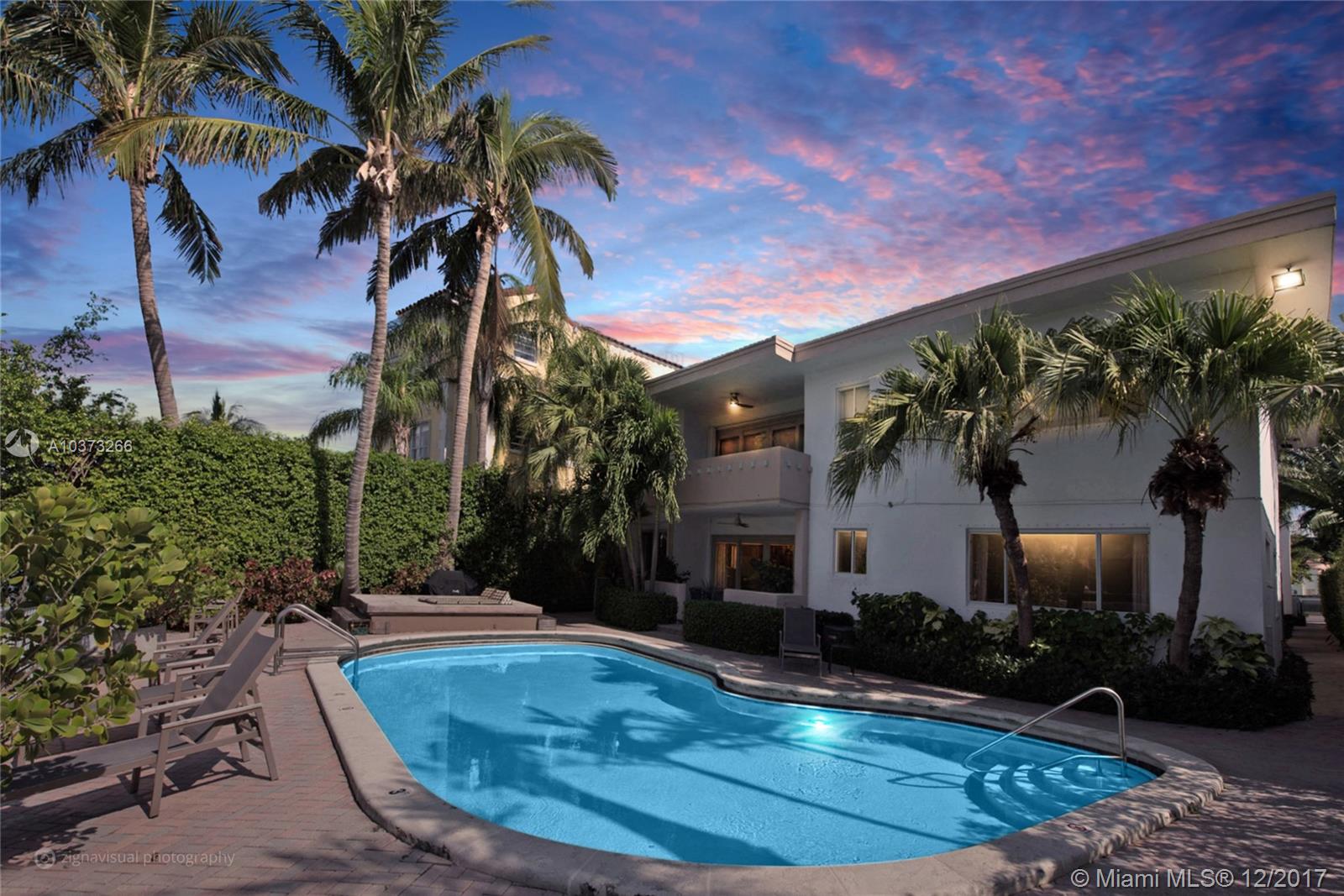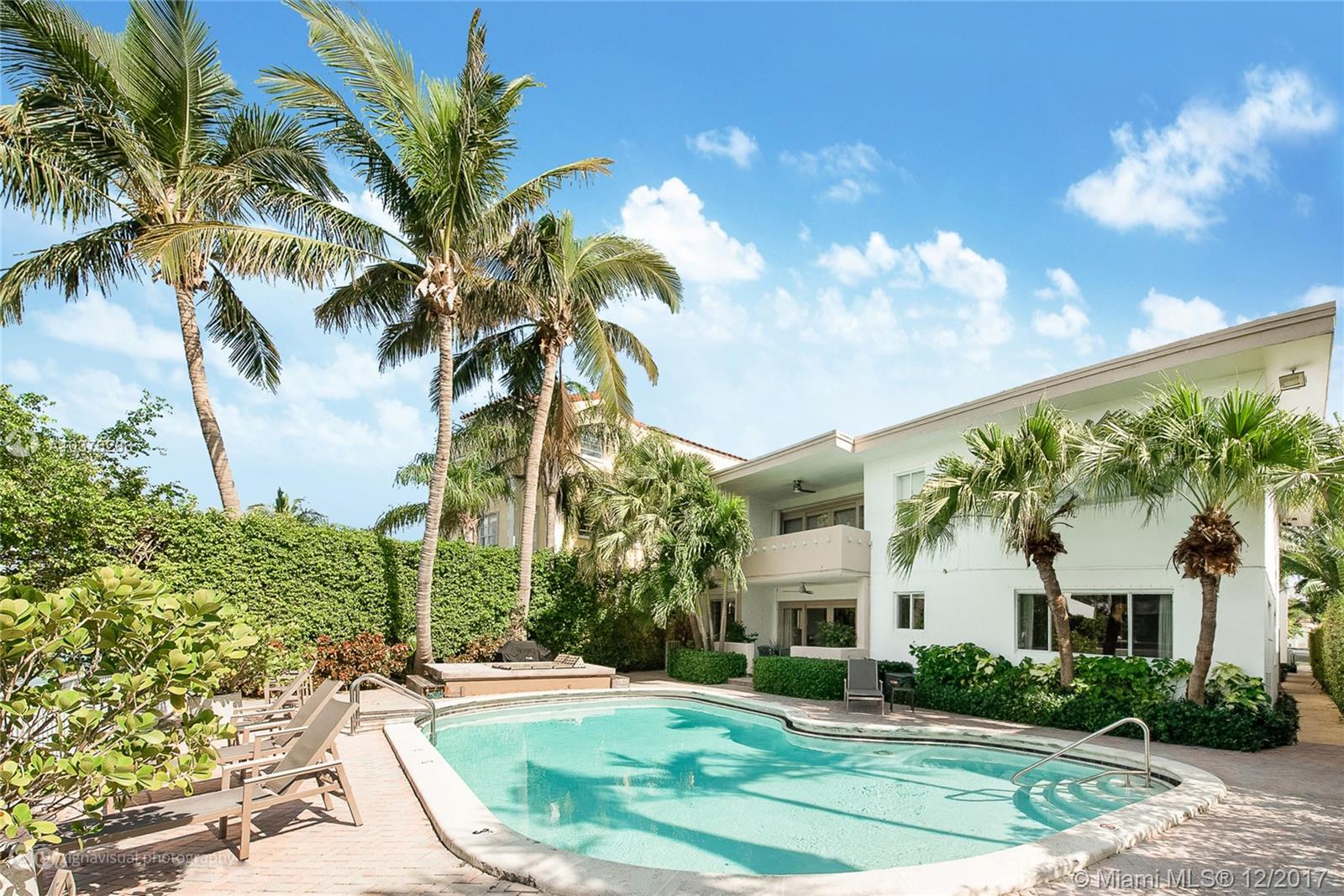 Gorgeous waterfront oasis with the look and feel of a single family home. Enjoy peace and tranquility from your waterfront home. Small 10 unit MiMo building dripping in charm located on one of the most prestigious addresses on Miami Beach. This apartment has it all, hardwood floors throughout, large master overlooking the water with loads of closet space. Windows on three sides, walk out your backdoor to your own patio straight onto the pool deck with views of multimillion homes across the wide canal. Access to the saltwater canal and bay for water sports or just sit by the water and watch the sunset.