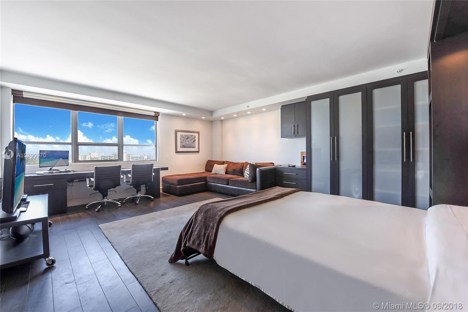 Completely Renovated Studio in the Heart of South Beach! Custom Carpentry including Murphy Bed, Desk/breakfast area, Armoire, & Kitchen Cabinets. High-end Appliances (oven/range, microwave, dishwasher, beverage ctr,& refrigerator w icemaker), mosaic tile backsplash & Silestone counters.Totally Renovated Bathroom. Lots of added storage & low-maintenance porcelain floors throughout. Custom black out window treatments. Walking distance to Lincoln Road & minutes from the beach.Amenities include Infinity Pool, Spa, Jacuzzi, World Class Fitness Center with yoga, spinning, boot camp classes, beach volleyball, day spa/salon, restaurant with full bar providing pool lounge service, doggy day care, on-site dry cleaners and market/liquor store. Flamingo South Beach offers the best in 1st Class living!