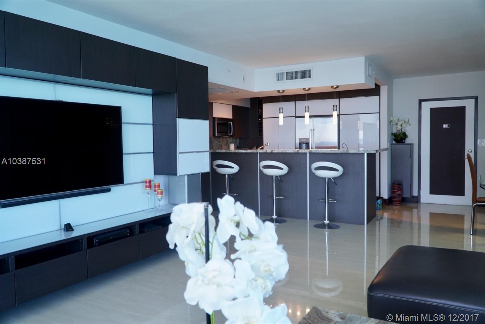 THE OCEANFRONT TURNKEY DREAM! Completely renovated & re-designed 2bdrm/2bath direct ocean-view corner unit. Floor plan features a full open kitchen & bar boasts Bordeaux river granite-counter-tops from Brazil, SS Bosch appliances & Italian custom-made cabinetry made from the finest materials, high-grade hardware & high end finishes by Armadi. 32x32 large format tile flows throughout the unit, built-in wall units in every room, Interior Doors by Itali & custom walk-ins & sliding closets by Armadi. Bathrooms boasts floor to ceiling tile/marble walls, framelesss showers, Toto toilets & integrated shower systems w/built-in shower benches, Hurricane Impact glass windows & doors, electric-roller shades & electric blackouts in bedrooms w/ sheer curtain window treatments, LED lighting & more.
