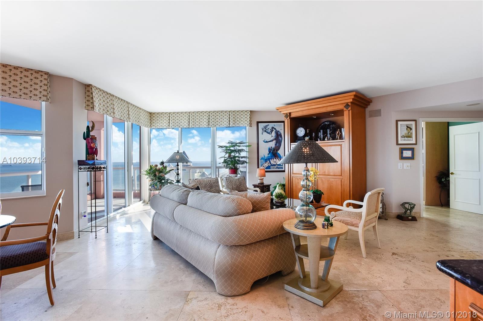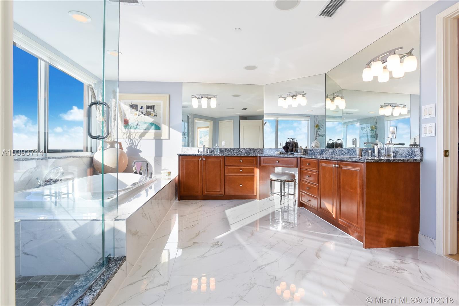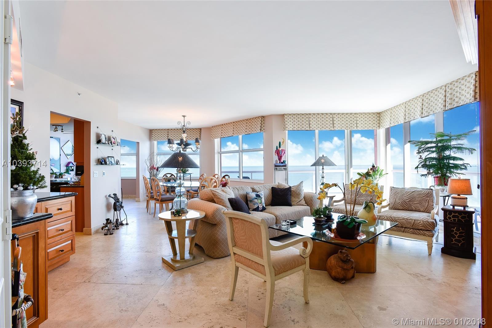 Highly desirable high floor Florence model offers spectacular and direct east and southeast ocean views, Intracoastal views, two terraces and a highly desirable oversized floor plan. Gracious living and dining room with adjacent den/3rd bedroom, oversized master suite, oversized walk-in closet, 2 new baths including new master bath with spectacular Intracoastal views, elegant marble flooring and 2 parking spaces. Enjoy five star resort amenities such as two pools, attended beach, tennis, fitness, elegant club rooms, beautifully appointed lobby, 24 hour security and valet.