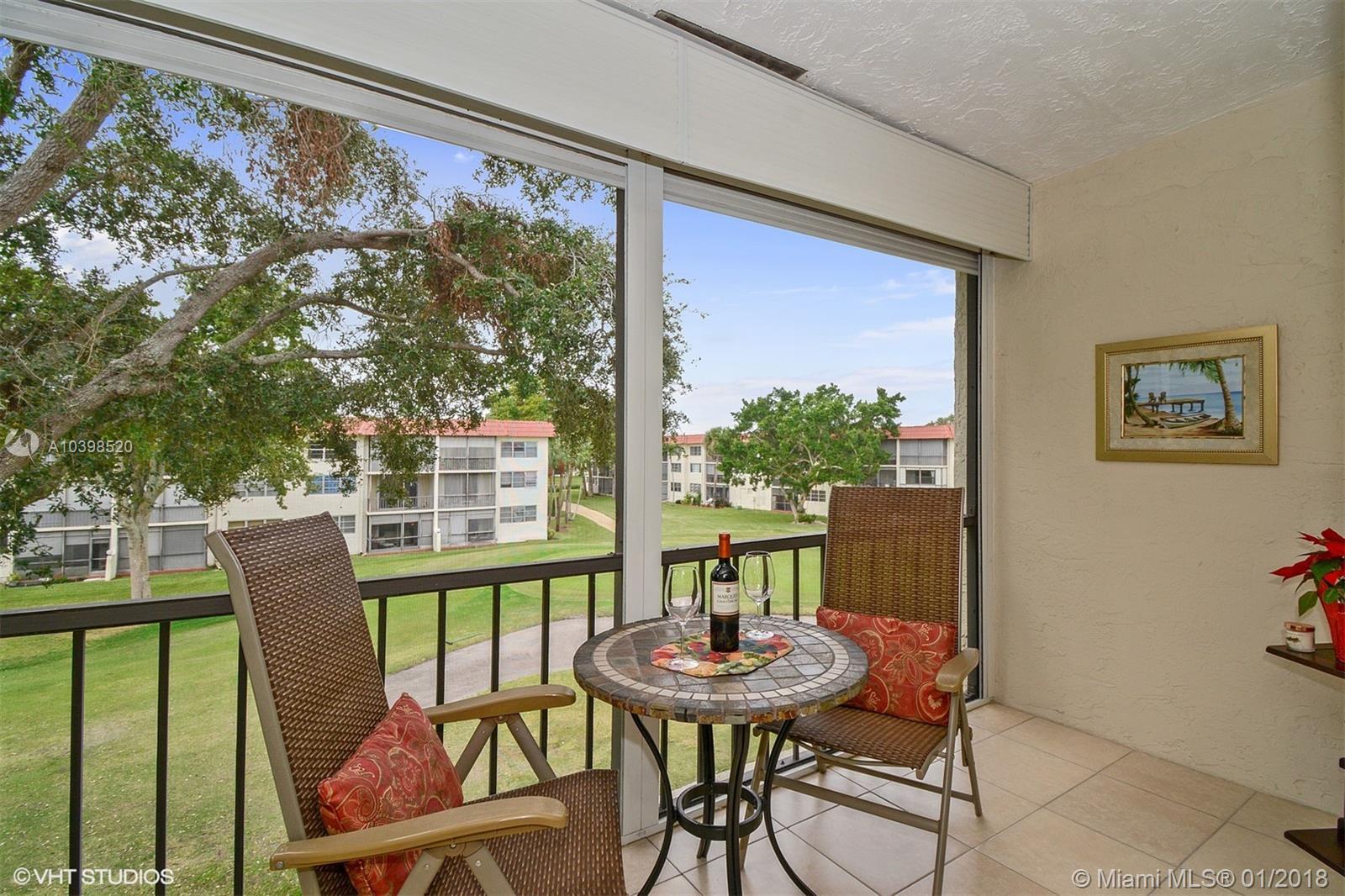 This immaculate fully renovated condo is definitely a 10 ! Enjoy the happy hour with sun set while appreciating the golf green and mature trees. FREE GOLF!!! Bright top floor unit, this pristine condo 2/2 on a golf course includes all furniture (high quality) and sold fully equipped. Some appliances are only one year old. Worry free – all windows and front door are high impact. Opened kitchen with floor-to-ceiling modern cabinets. Fine-looking bedrooms and baths. Conveniently located at a walking distance to all amenities: 2 golf courses (one PGA grade) , 14 tennis courts, heated pools, theater, restaurant, gym, 24 hrs security, etc.. Small pet allowed. Very active 55+ community with shows, sports, parties, etc.. Rec lease paid in full. Wont last long on the market. See it today.