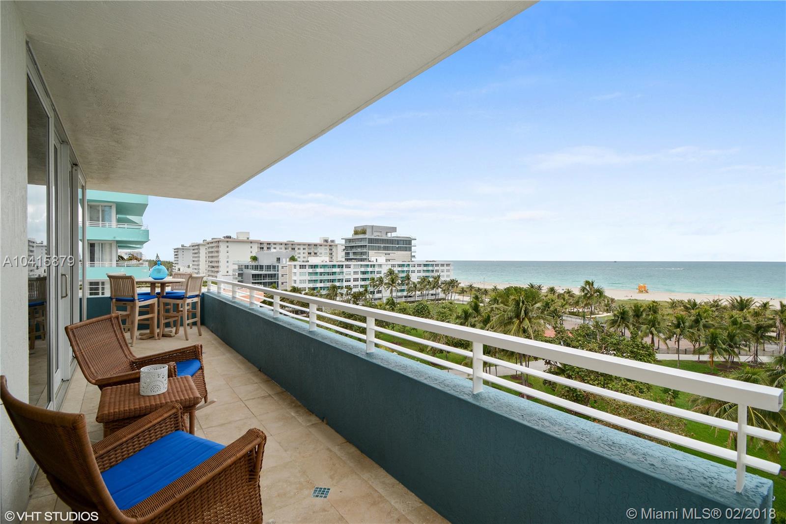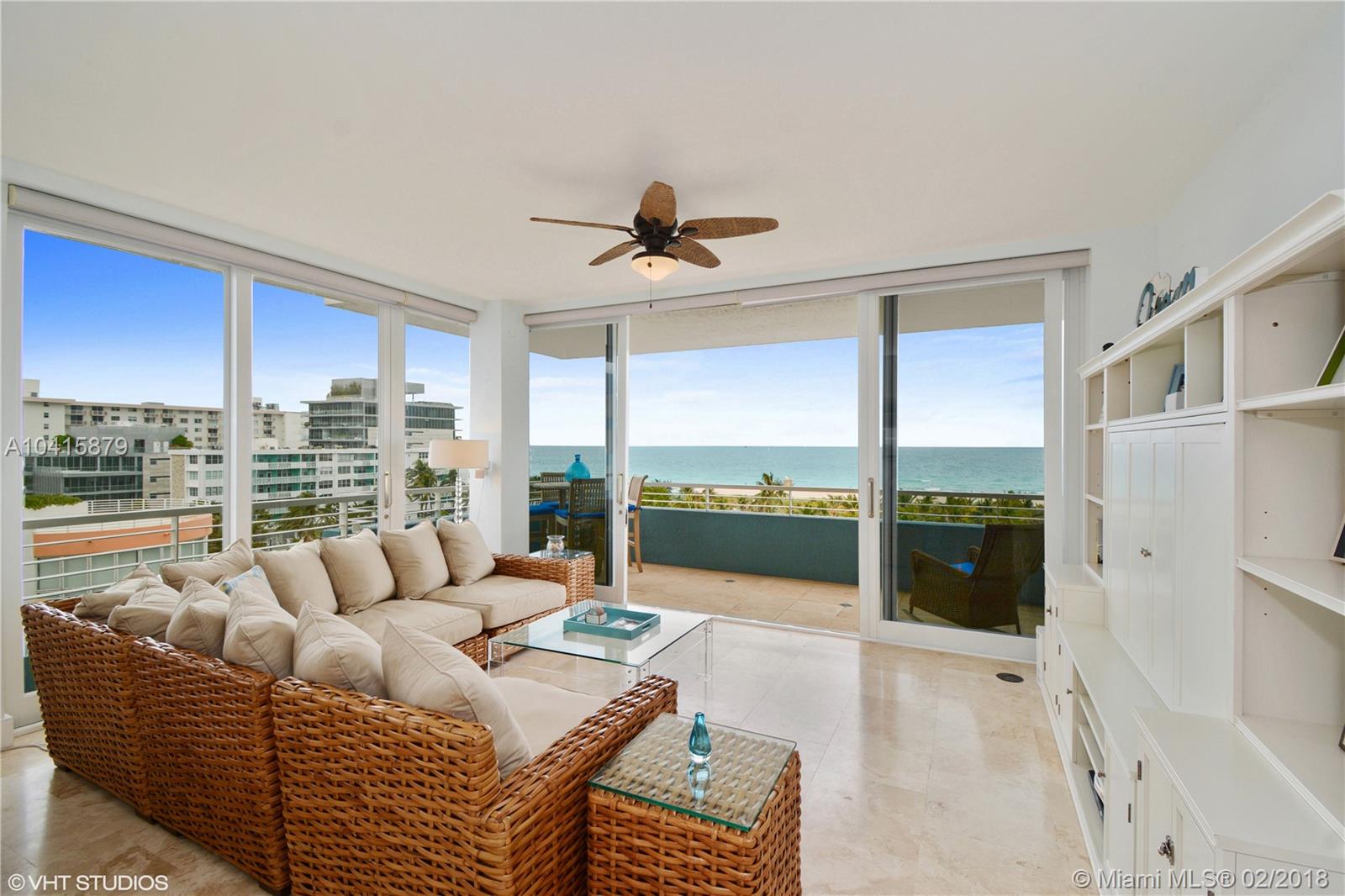 Magnificent direct ocean views with private wrap-around balcony from this 8th floor, 2 bed, 2 bath, 1,350 SF apartment on World Famous Ocean Drive. Elegant interior with new hurricane impact doors & windows, designer kitchen & baths, his & her closets, & travertine marble floors. Boutique 20 unit building features ocean front pool & spa, fitness center, secure lobby, & parking. World class dining, shopping, entertainment, & brilliant beaches are steps away. Easy to show.