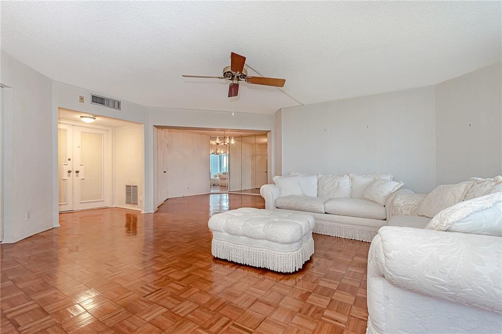 Low floor, feels like you're literally living on the beach !! Watch and hear the surf as it washes the white sand. Corner unit with wrap around balcony for year round outdoor dining and entertaining. 2 bedroom, 2 bath unit with loads of potential. New Air conditioner, ample kitchen cabinets, impact windows and doors, and low maintenance. Laundry in unit. Loaded with potential. Absolutely impressive building with sauna, gym, party room, heated pool and 24 hour security. Ample guest parking. The Claridge is an impeccably maintained jewel on the sand. Motivated seller. Bring in all reasonable offers.
