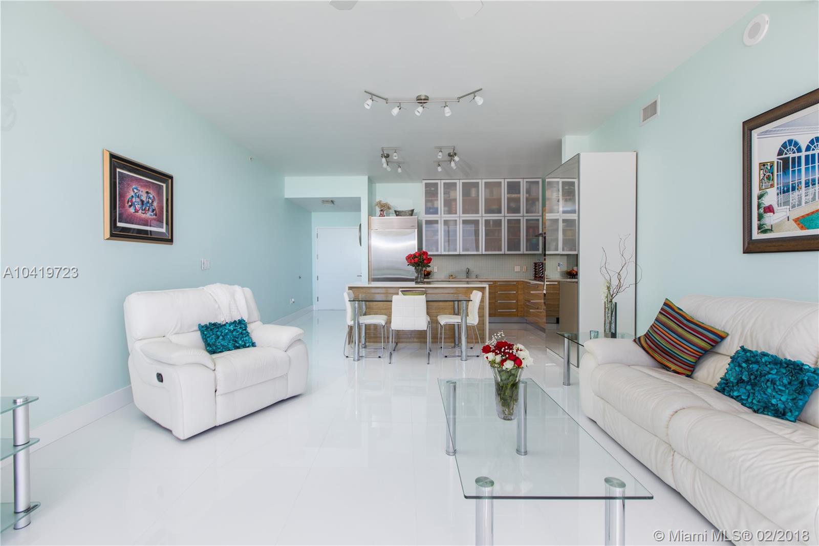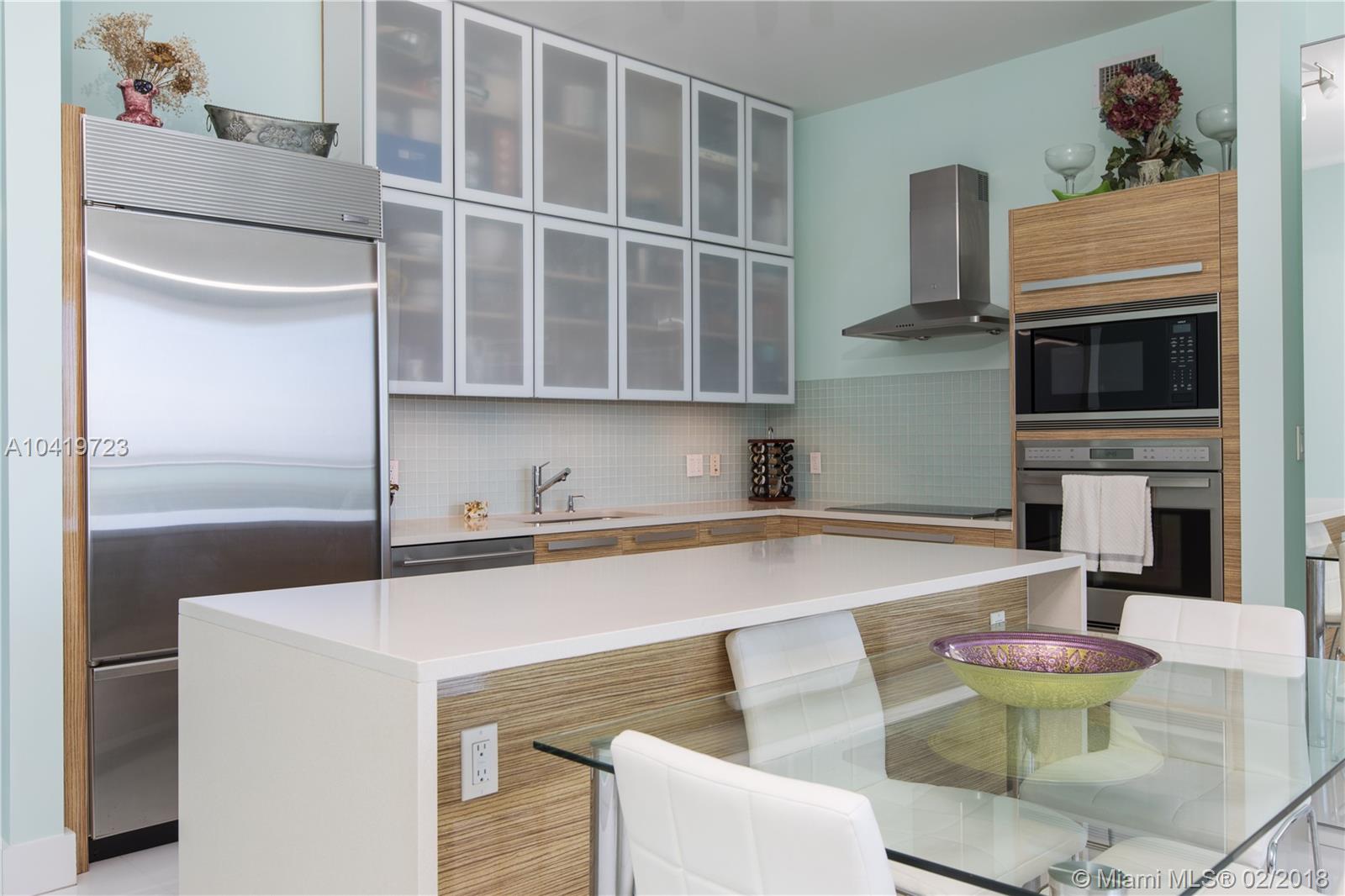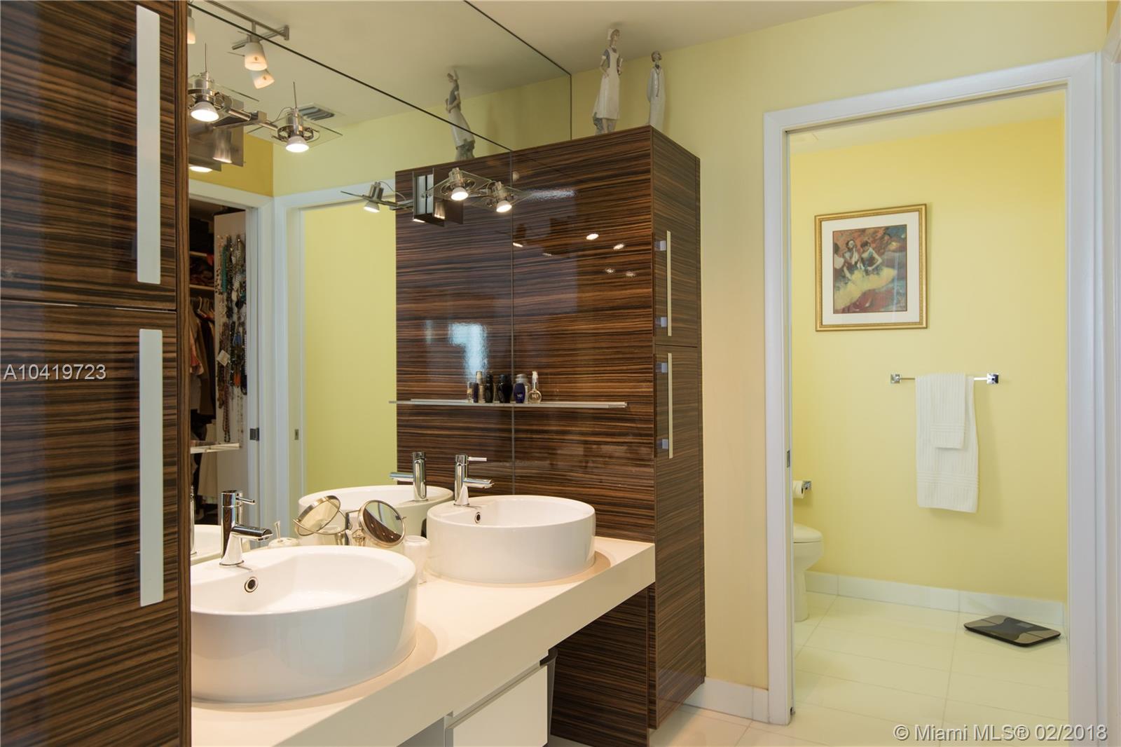 OWNER FINANCING/ LEASE BACK AVAILABLE. Luxury high-rise with spectacular water views. Large magnificent 2 bedrooms plus den(or 3rd bedroom), 2 ½ bath, through and through condo, sunrise and sunset views. Private elevator and foyer, spacious eight-foot deep balcony, 10 ft. ceilings. Direct views of Biscayne Bay and Miami Beach. Impeccable condition, move in ready. High-end stainless appliances. Easy to show, exceptional quality. Distinctive resort-like living, central location minutes to Midtown, Wynwood, Design District, Adrienne Arsht, and Metro. Resort like amenities include 2 pools, Pilates room, group fitness classes, child playrooms, full spa, steam rooms, billiards, club room, etc. Additional parking space, completely furnished and large storage unit also available. MBR FAN EXCLUDED