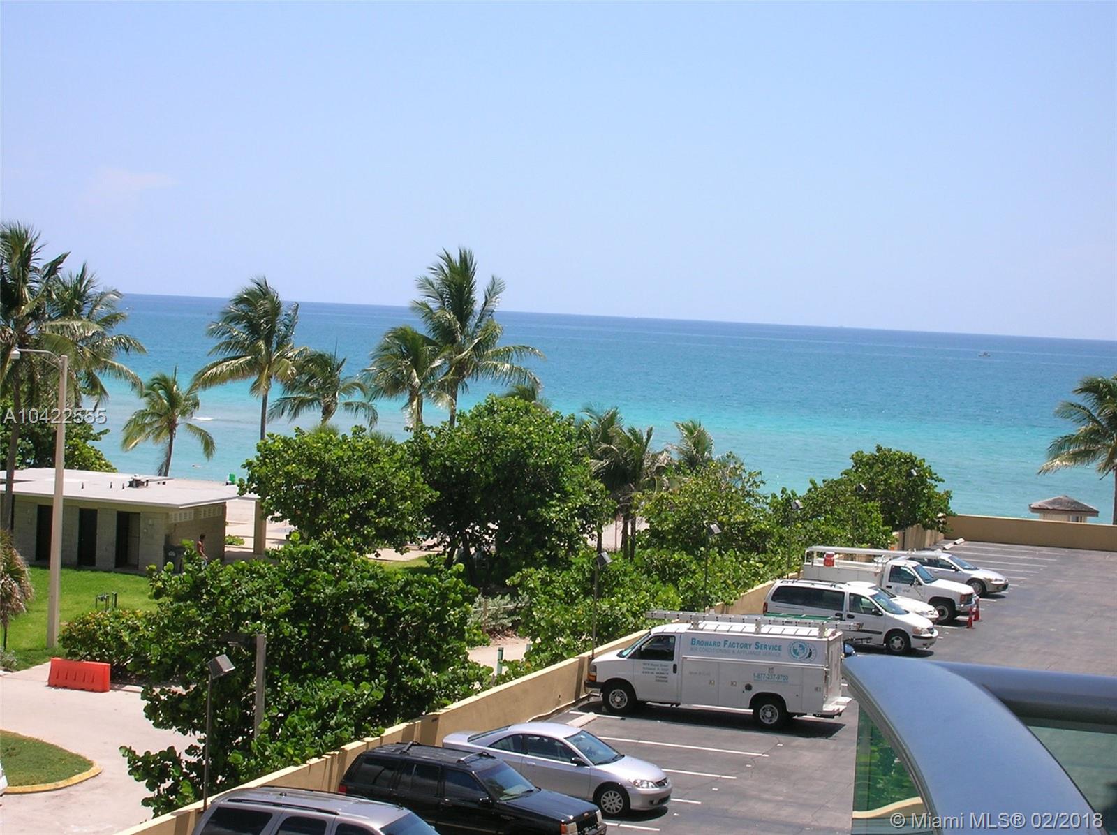 BRIGHT AND SPACIOUS FULLY FURNISHED STUDIO ON THE BEACH WITH OCEAN AND CITY VIEWS. TILE FLOOR THROUGOUT, WALK IN CLOSET. GREAT BUILDING WITH MANY AMENITIES, A BRAND NEW POOL AREA, WITH HEATED POOL AND JACUZZI. CONVENIENCE STORE, NEW GYM OVERLOOKING THE OCEAN. OK TO RENT FIRST YEAR. 90 DAYS MINIMUM RENT, 4 TIMES A YEAR. A/C AND BASIC TV CABLE INCLUDED IN THE MAINTENANCE. GREAT LOCATION, WALKING DISTANCE TO HOLLYWOOD BOARDWALK AND RESTAURANTS.