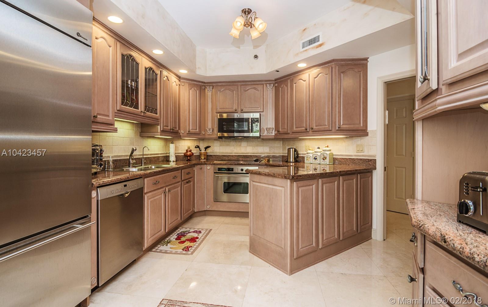 WOW! Unique one of a kind property in Mediterranean Village on Williams Island! Get all the benefits of living in a house without the headaches. This spacious corner unit with 10 foot ceilings, windows everywhere makes this home bright & full of light with views of the pool and lush landscaping. So peaceful. Elegantly upgraded with no detail spared. High quality materials & workmanship throughout including a Sherle Wagner onyx sink. An absolute pleasure to show. Come see for yourself. Third bedroom was converted to a large family room making this a huge two bedroom, two and a half bathroom home. Great open floor plan for entertaining and being with your family. Don't miss this opportunity!