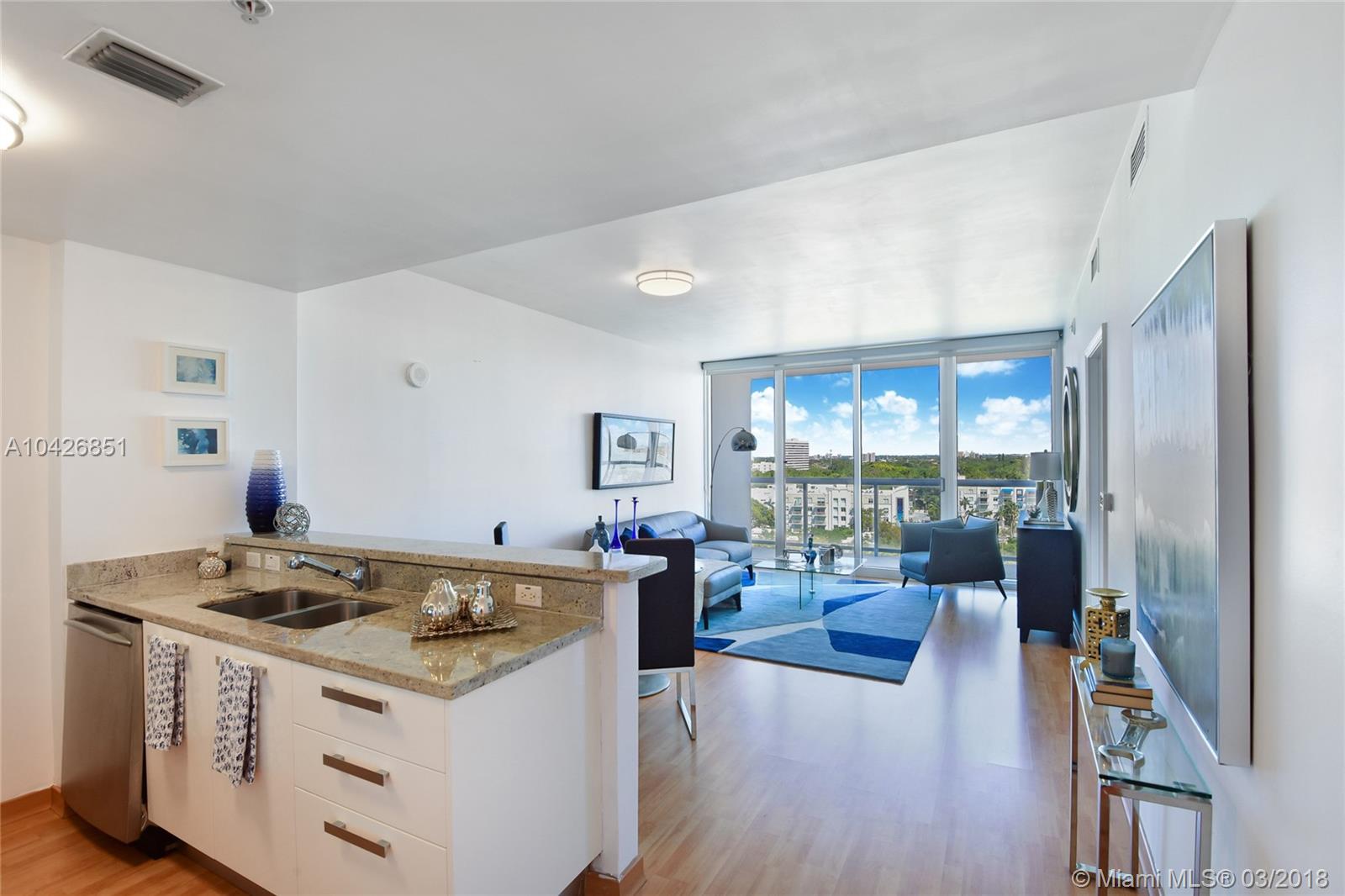 Stunning 1 bed/1.5 bath condo at The Blue with stainless steel appliances, granite counters and bar, laminate wood flooring, walk-in closet, W/D, and automated blackout shades. Floor-to-ceiling windows in living & bedroom and spacious balcony offer direct Biscayne Bay views. Unit comes with an assigned parking space and storage unit. Building features a fitness center, spa, heated lap and swimming pools, jacuzzi, BBQ area, theater room, billiard room, children's area, 24-hr security, valet, market, and dog run. This property is ideally located in the highly sought after Edgewater neighborhood of Miami. It's walking distance to luxury shopping and upscale dining in the Miami Design District, Midtown, and Wynwood. 10-min drive to Miami Beach, Downtown, and Miami International Airport.
