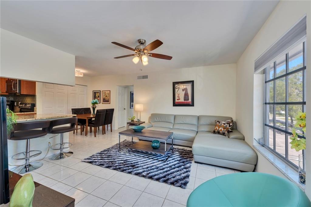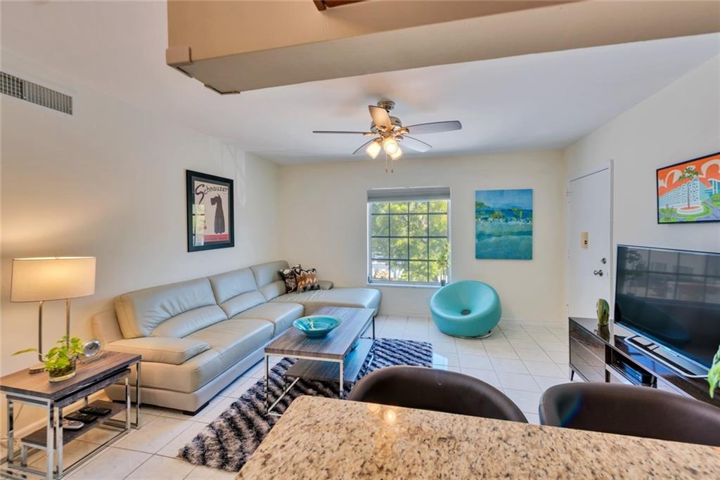 Strikingly handsome & roomy 2bed 1.5 bath corner unit on second floor. Renovated kitchen w/ granite counter tops, new stove, microwave & dishwasher plus new cabinets too! Renovated full bath with vanity and shower/tub plus ADA height toilet. Reno'd half bath also with ADA toilet. Popcorn ceilings smoothed! AC & Water heater 2014 new. NEW ceiling fans in all rooms. NEW six panel doors. Custom closet in master and custum enlarged storage closet. Oversized combo washer/dryer. Truly a wonderful opportunity.
