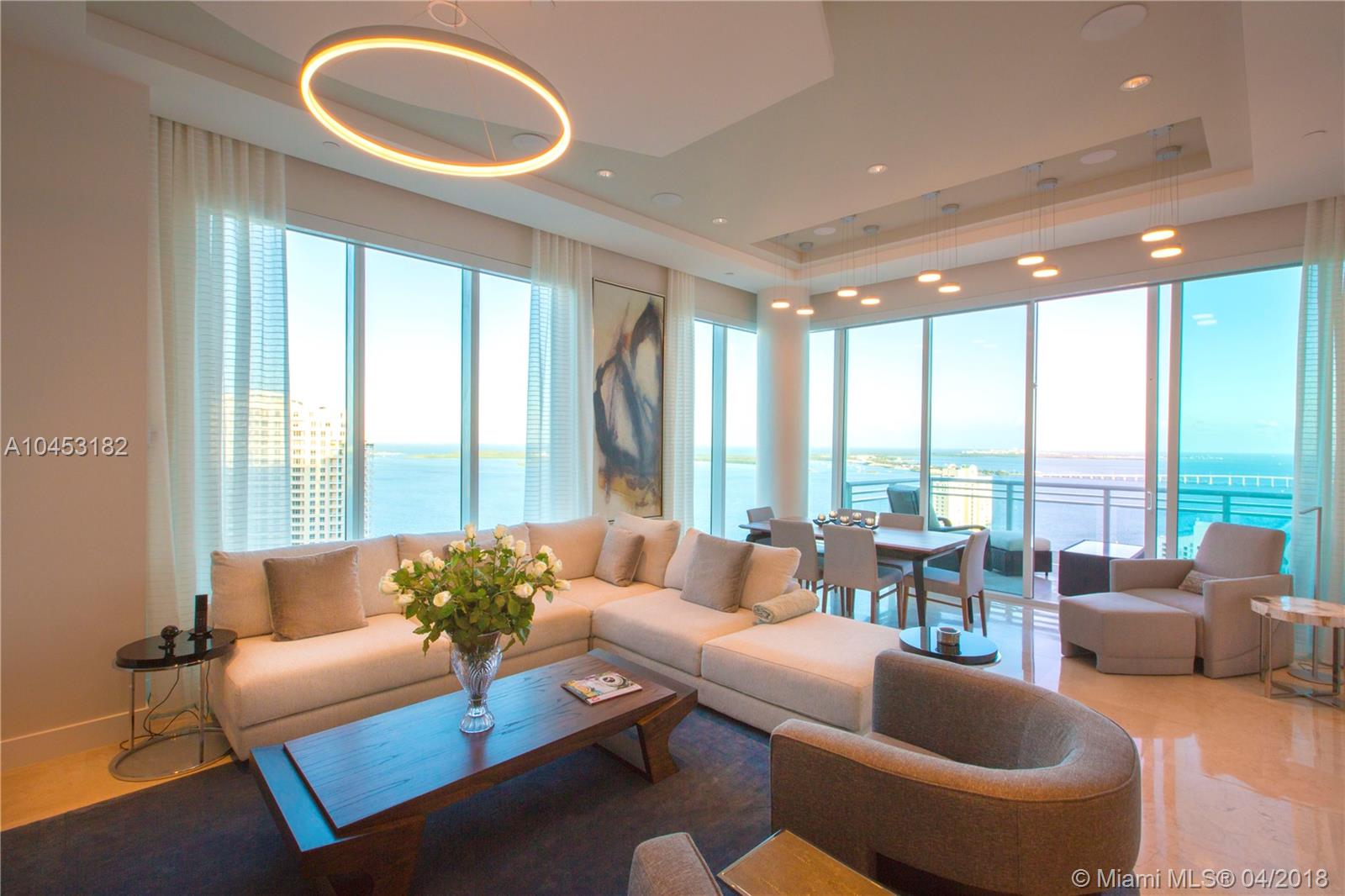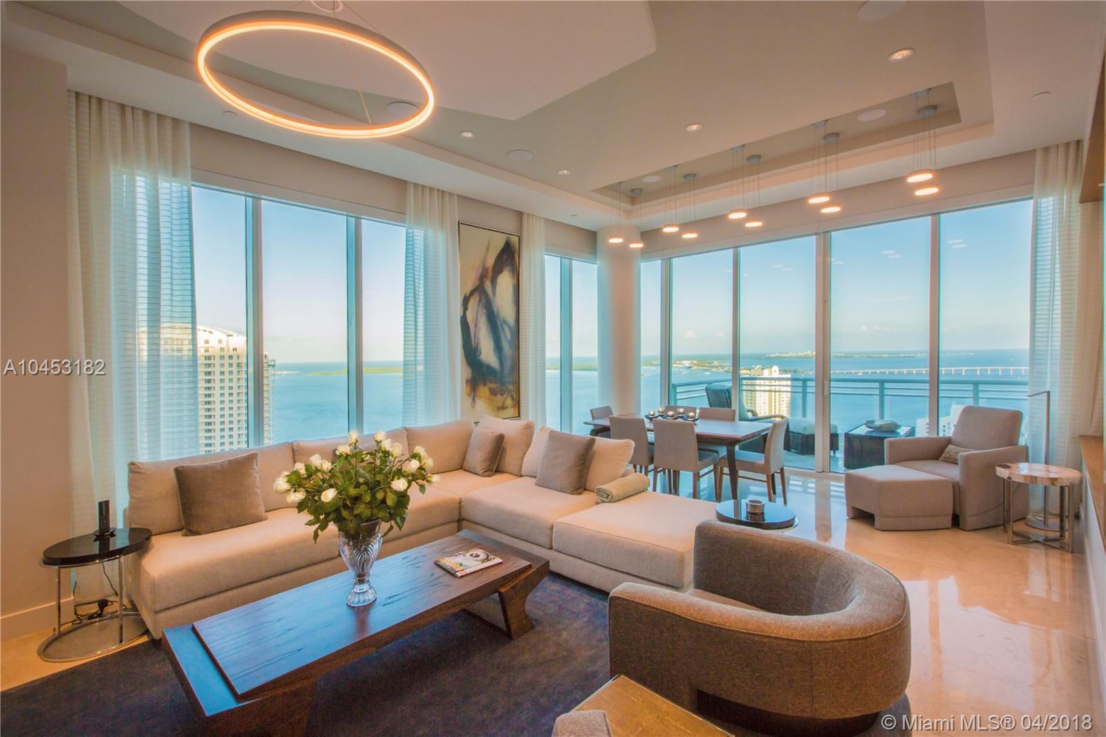 Like a dominant bird of prey, perched high above one of the worlds most beautiful cities. You will enjoy this totally updated exquisite condo over miami. With some of the most exhilarating views of the Ocean, Biscayne Bay, Miami Beach and Key Biscayne, from High above the mouth of the Miami River, you will witness the beauty of each and every day, from sunrise to sunset. Snaidero, Miele, Sub Zero, and Carrera marble will enable your culinary endeavors while home automation and technology surrender some of the most mundane tasks to the push of a button. 4 elegantly appointed bedrooms with ample balconies, 4.5 baths with beautiful stone finishes. 3 dedicated parking spaces by the lobby + valet, private elevator foyer, rationalized storage and a home you won't want to leave.