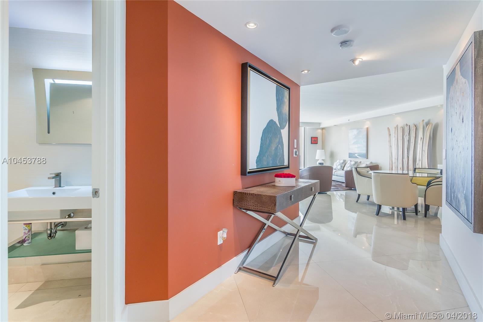 Beautiful residence with Spectacular unobstructed direct ocean, intracoastal and city views. High attention to detail in this Unit. Extra lighting with high end dimmers. Flow through floor Plan, open kitchen with top of the line appliances and breakfast area and extra pantry. 3 Bedrooms, 3.5 bathrooms, plenty of storage and closet space, laundry room. Media room, Electric blinds and High-end Audiovisual system all through out home. 3 open terraces. Furniture is Negociable. Property has Amazing art work and great Taste Decor. Building has 5 star amenities: 2 heated swimming pools and spa. Barbecue Area, Recreation area, Club House, Business Center, 3 tennis courts, Complementary Valet parking, Concierge, Juice and coffee bar and much more!!