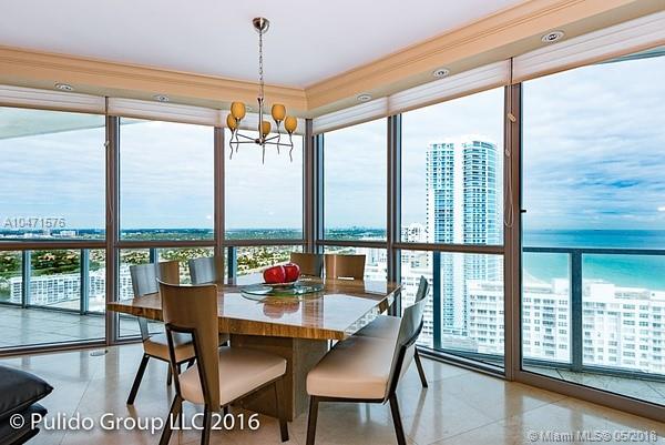 Right on the beach side. Spectacular views of the ocean. Offers best amenities: Pool, media room, billiards room, fitness center, business center, tennis court, BBQ area. Close to fine restaurants, shopping center, Aventura Mall. And great schools. This is a must see property.