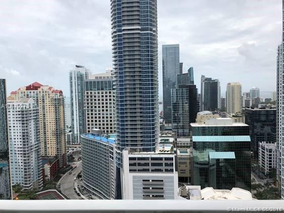 Lovely 33rd floor condo in the Plaza. 2 full bathroom, tile floors, great kitchen with wood cabinets, stainless appliances, incredible views of city and sea. Tall ceilings, floor-to-ceiling windows enhance sense of space. Each room has access to balcony and the amazing views. The building offers an extensive gym, large pool patio with two pools, private cinema and billiard room. Walking distance to Mary Brickell, close to shopping, transportation, downtown financial district, south beach and so much more!