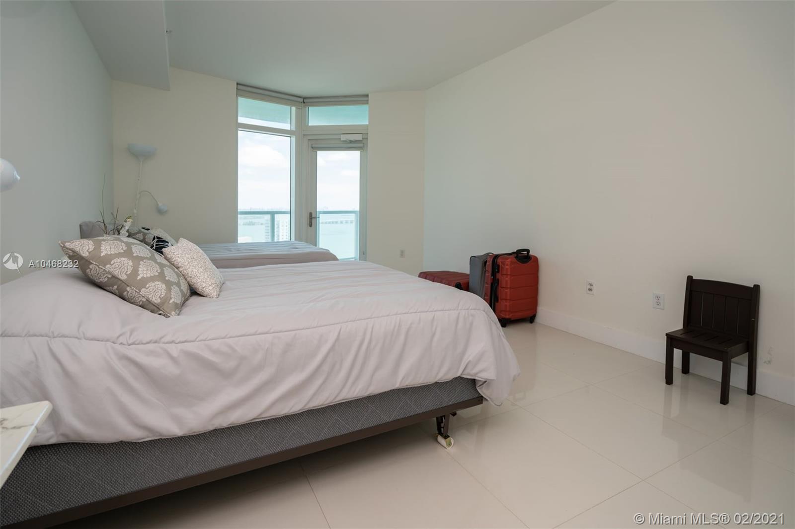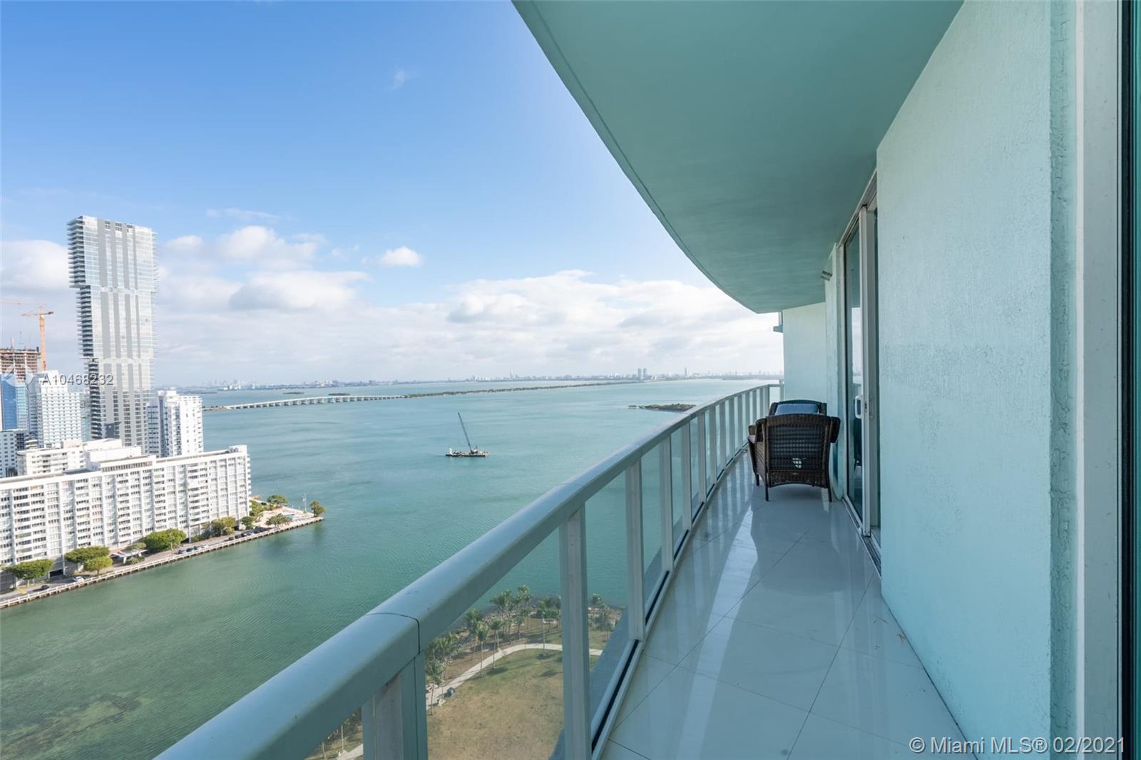 2 bedroom 2 bath Split floorplan. Great views of bay and city. Upgraded Porcelain tile throughout unit and balcony. Lots of closet space and spacious kitchen. Balcony runs length of unit is very roomy. Building has fantastic amenities including 2 pools, incredible gym, sauna, numerous public spaces to unwind and or hold events. Easy commute to Airport, Beaches, Brickell, Downtown, Wynwood and much more. 2 supermarkets are walking distance and lots of great eateries in the area.