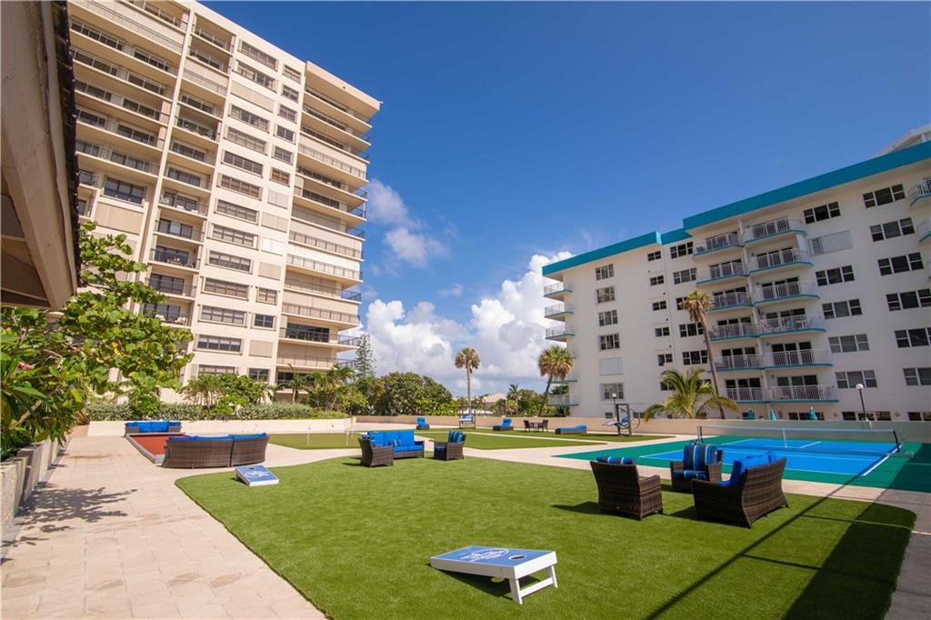 PRICE REDUCED!! On the Sand, Views of the Ocean, Open Balcony Overlooking the Pool, Bright open space, tile throughout. HUGE Master, space for a king bed plus a sitting area/office space if needed. Large walk in closet. Kitchen opens to dining area, & living area. Stainless appliances, Washer & Dryer in Unit. 24 Hour Security, BBQ area, Bocce Tennis, Private Beach, Heated Pool, Gym. Small Pet ok, Can lease immediately, 2x per year. Garage parking, storage.