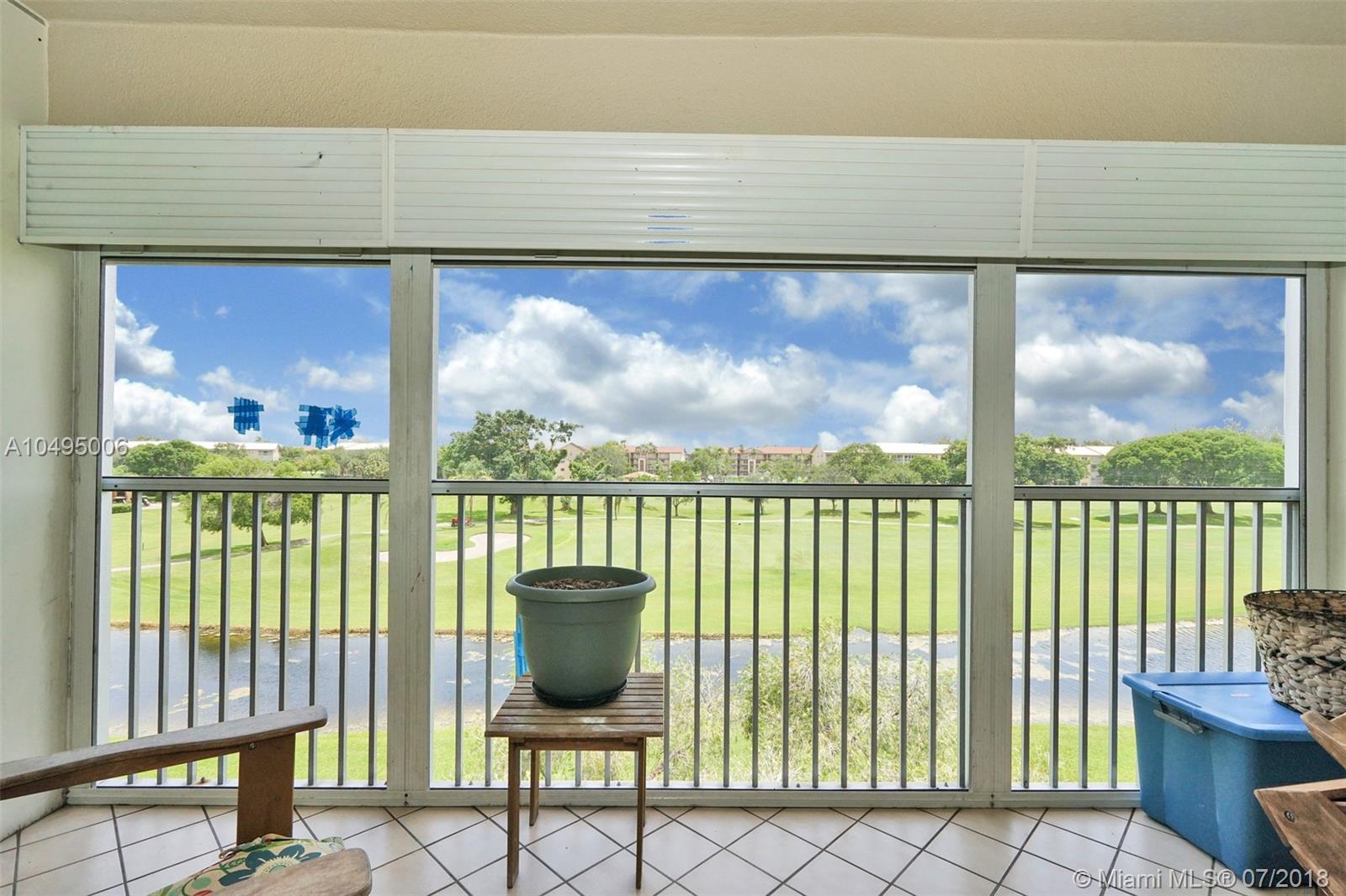 Rarely available 4th floor corner unit. Well kept and maintained 2 bedrooms 2 bathrooms with a breakfast nook and a galley kitchen that bring you directly into the living/dining area. Handicap accessible!! Walk in closets in both bedrooms, with access to the attic in the master bedroom closet. A breathing taking view, which looks onto the manicured golf course landscaping and a peaceful view of the one the multiple ponds. Location wise this is the best building in the entire community. This building is walking distance to the main clubhouse. With easy access to both entrances. A satellite pool positioned directly in front of the building. Take pleasure resort style living community in the most exclusive 55 plus community in Pembroke Pines! Million dollar clubhouse and much more.
