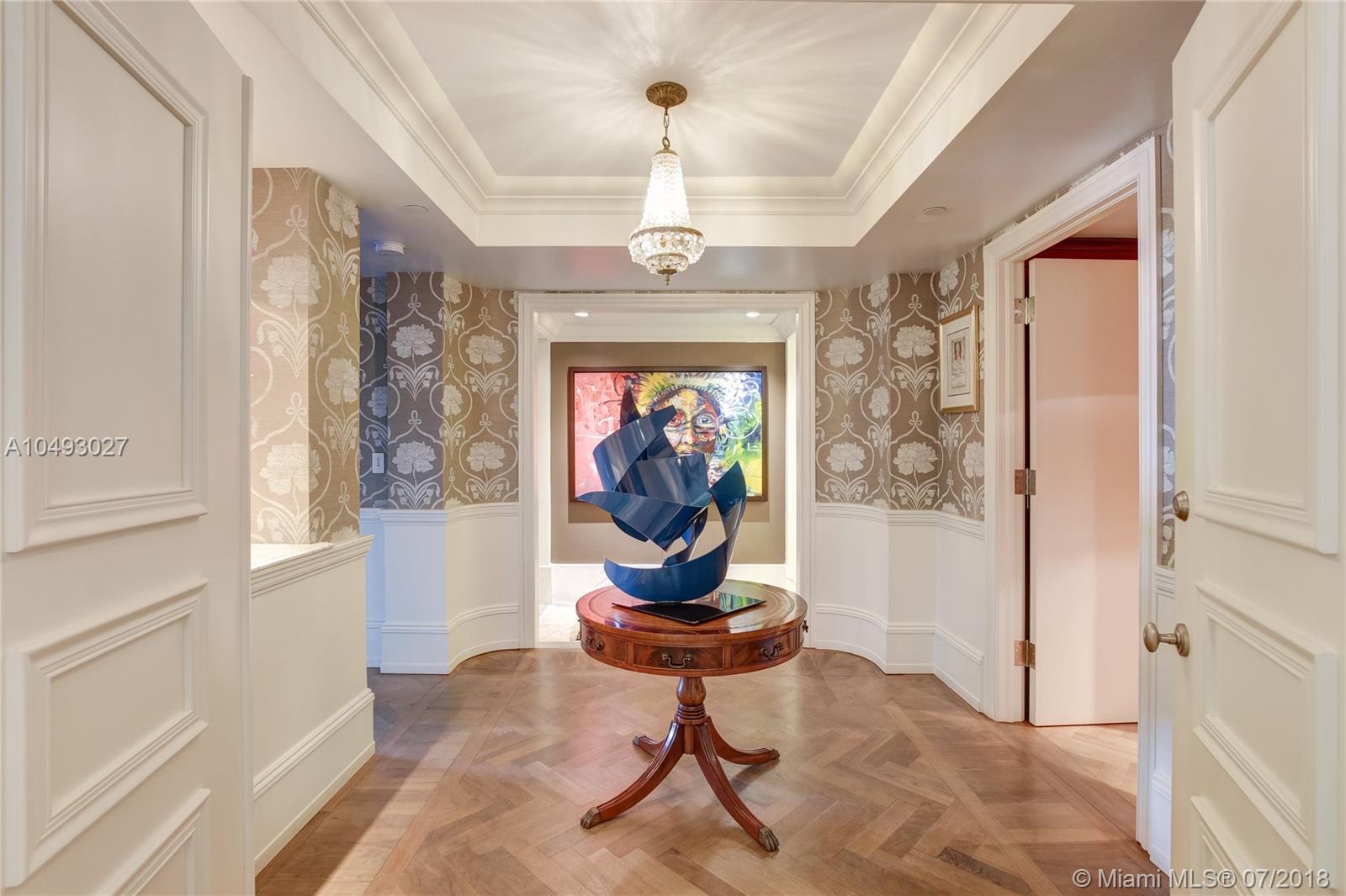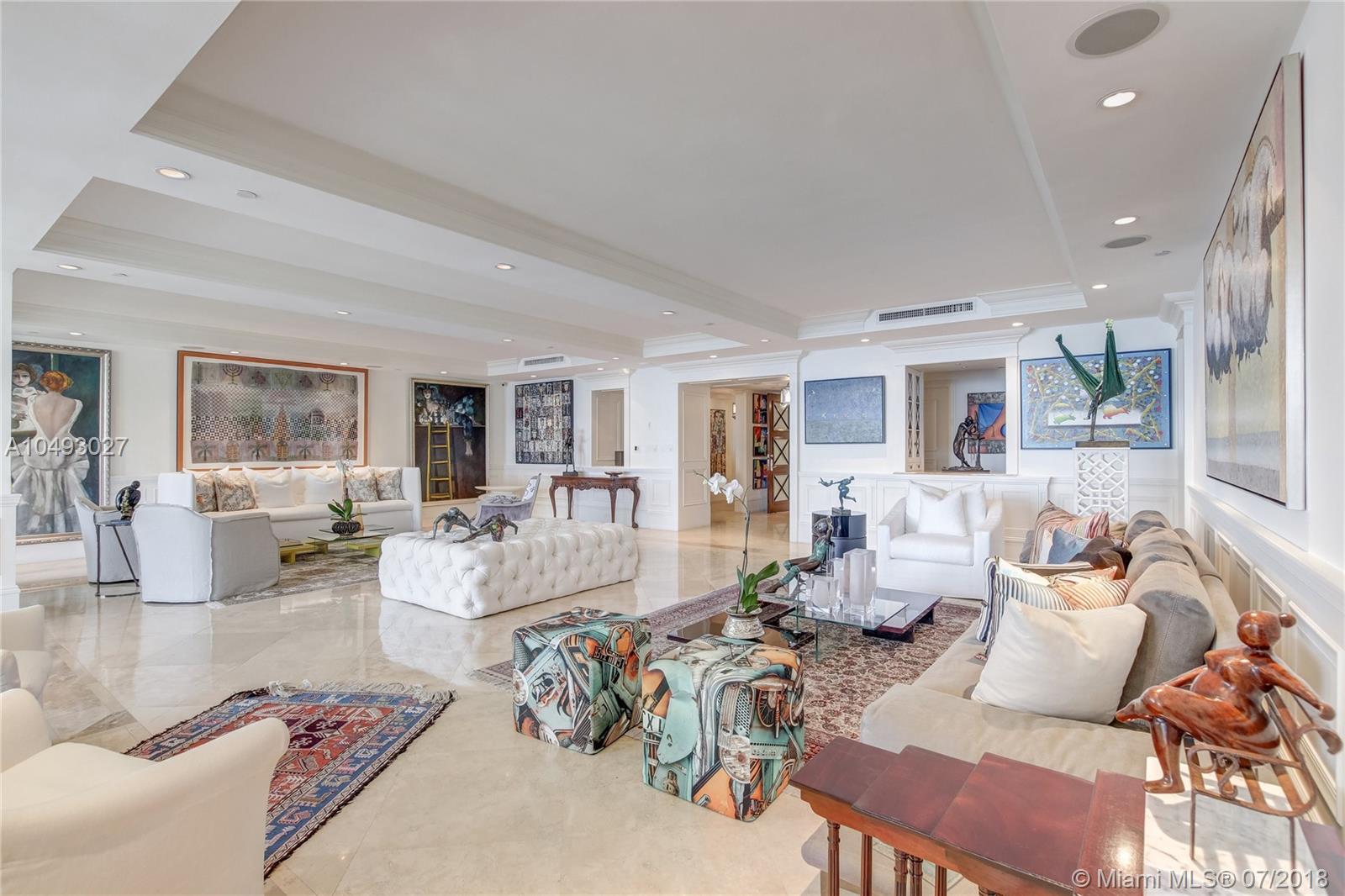 Presenting one of Grand Bay community’s largest luxury units with views of the Ocean and Bay. Just imagine 5634 int. SF, 5 bed, 4.5 baths, and beautiful terraces. A private elevator opens to the double size living room. An art lovers dream! Hector-Hector chef’s kitchen has center island breakfast bar, custom Chippendale cabinetry, top shelf appliances, three ovens and a wine fridge! Dinner can be served in the dining room next to the rustic Library, serving wine from the temperature controlled 1,100 bottle wine room. After a movie in the theater, retire to the Master suite with spacious walk-in closet, spa-like bath, for a soak in the tub. Draw the motorized shades, and enjoy the smart home entertainment system. Includes 2 parking spots, storage, and a 245 SF studio (1/1) on the 1st floor.