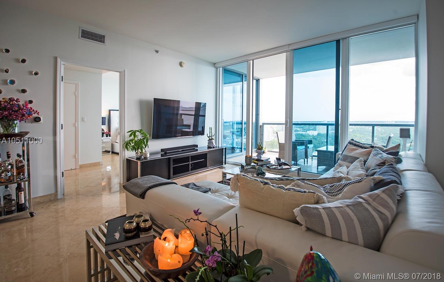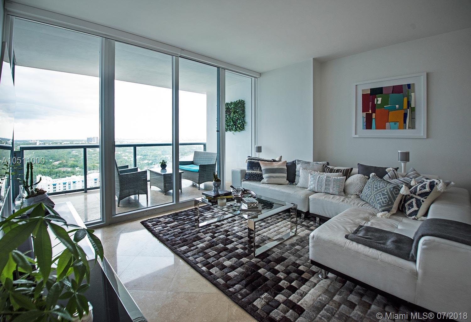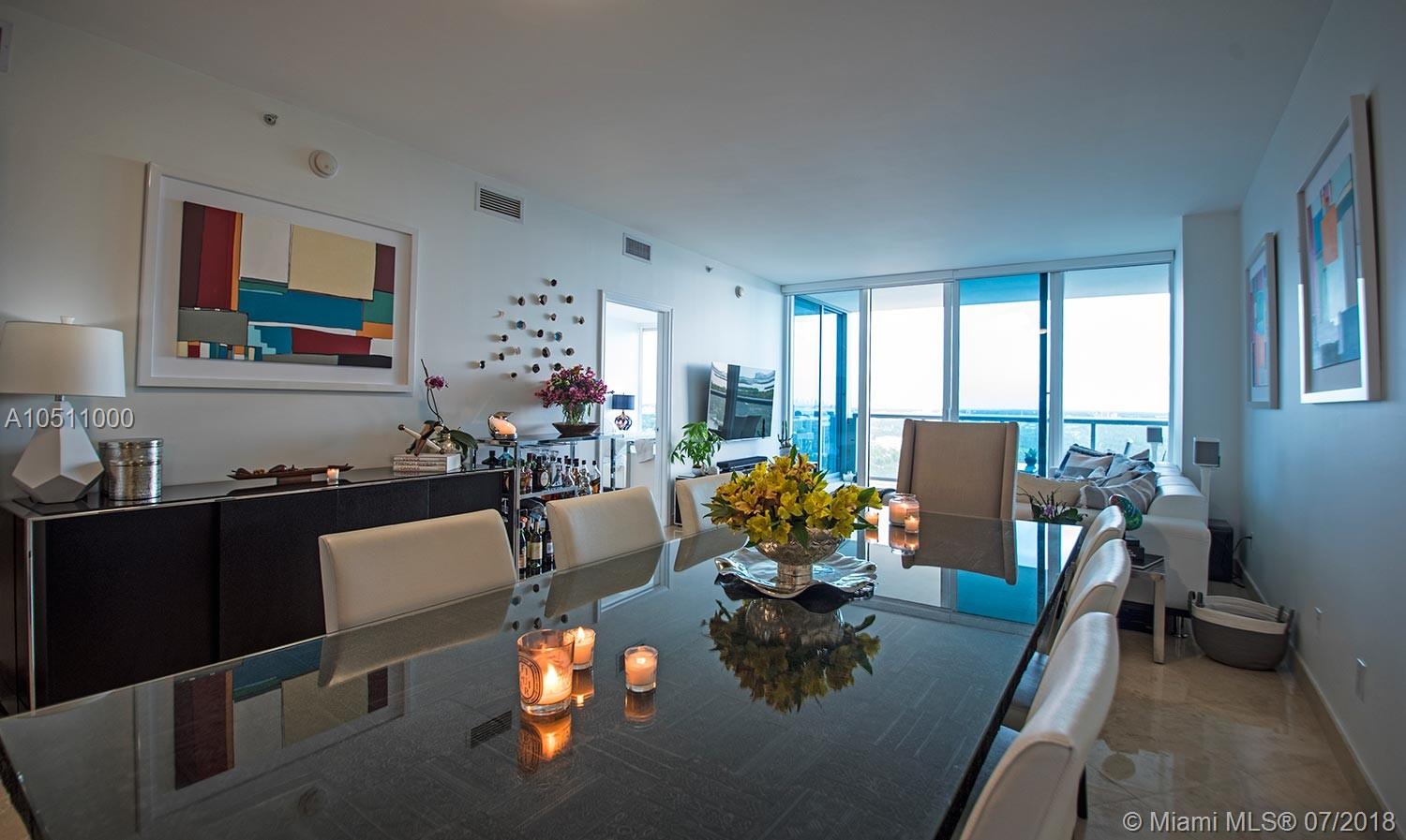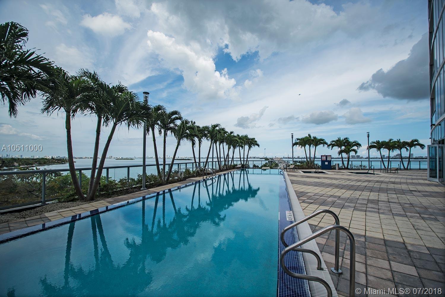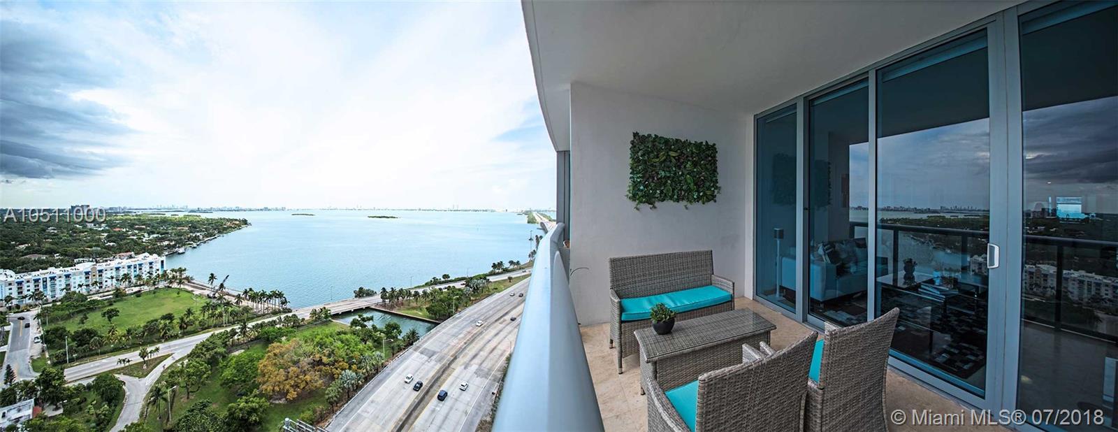 This unit has water views from every angle of the apartment Not only is it beautifully designed, but also it is spacious and with an incredible layout. The units in this building are semi-private (only three units per elevator) The unit comes with extra storage space, two parking spaces and the possibility of a third with valet parking. Blue condo is located at the coast of Edgewater, near design district and Midtown, Miami Beach, Brickell and downtown. Marble floors, Kitchen with granite counter tops, finished closets. Building Features a fitness center, spa, business center, 2 separate swimming pools and Jacuzzis. Easy to show!