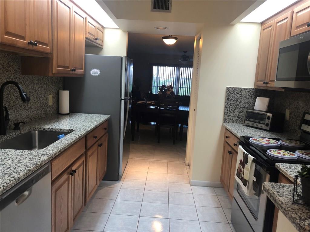 Beautiful, moving ready, pool area view, pristine "K" Model- 1.356 Square feet. Remodeled galley kitchen, new S/S appliances. Breakfast nook. Walking closets in both bedrooms- Utility and Linen closet, washer/dryer in the unit. Century Village offers lots of amenities and activities: Golf, tennis, pools, cafeteria, restaurant, library, sauna, gym, clubhouse, movies, and much more. 24/7 security patrols. Total maintenance $469/month Includes water, cable, Insurance. No rentals 1st year after buying