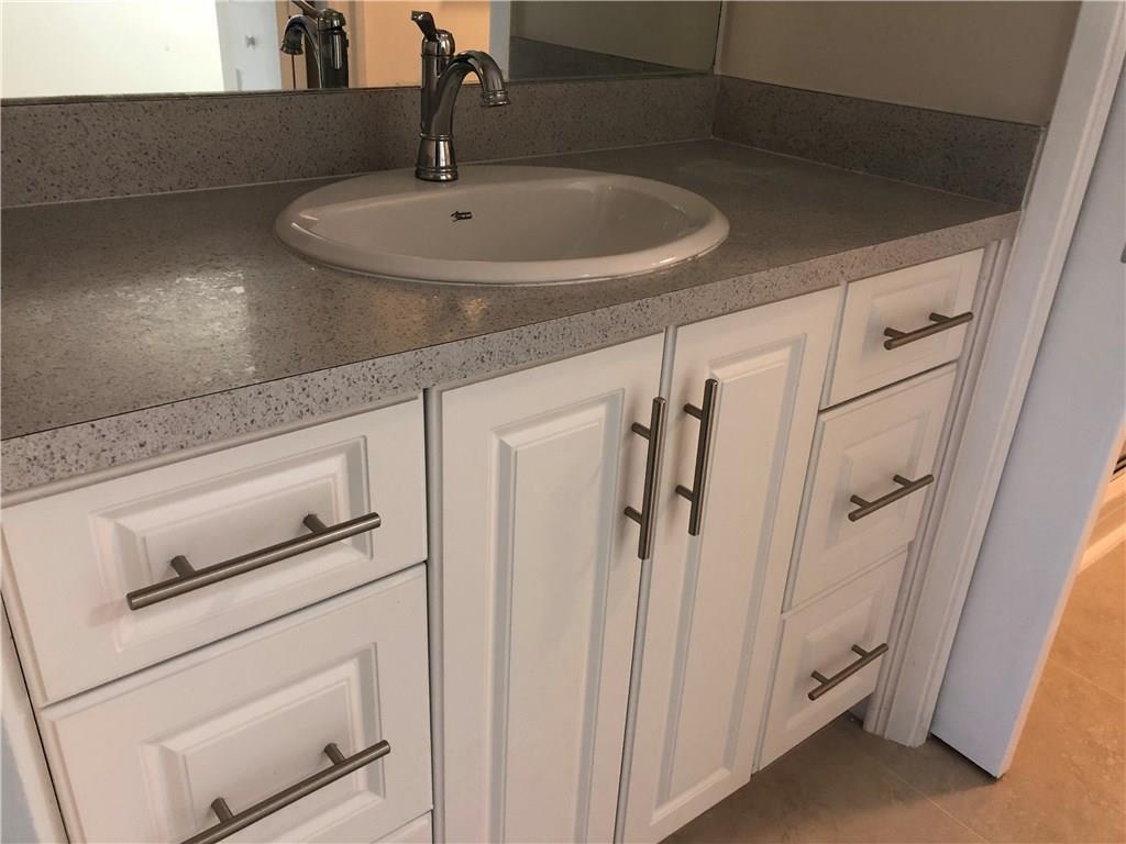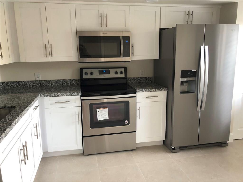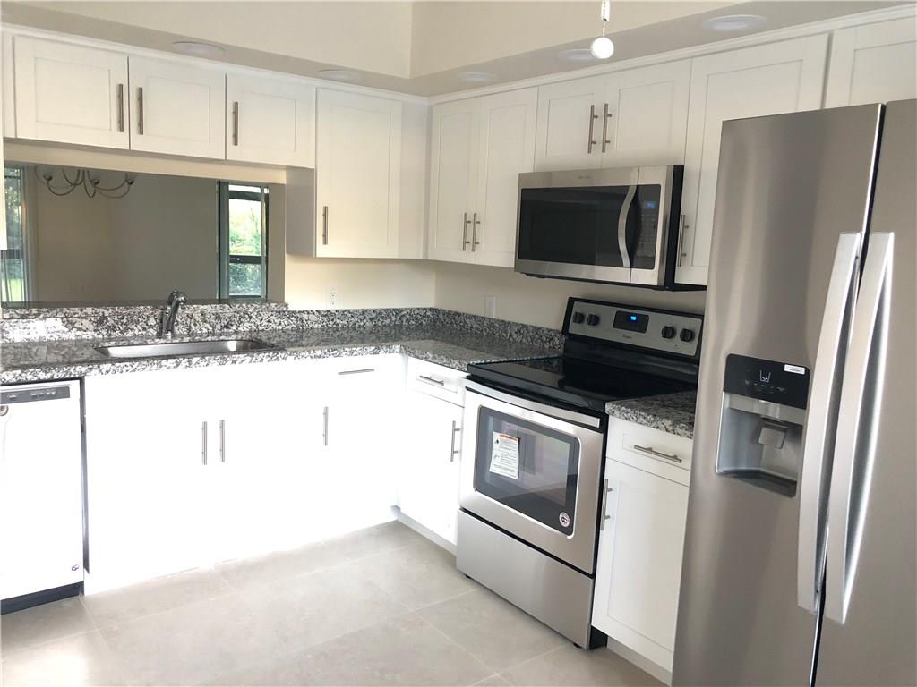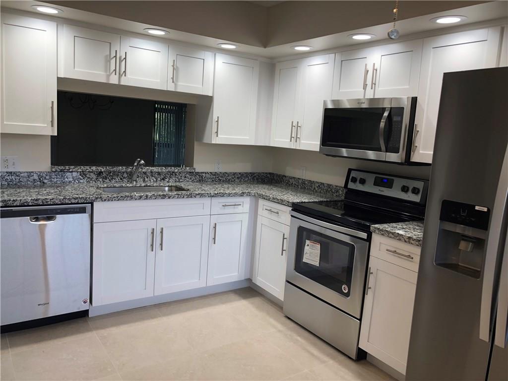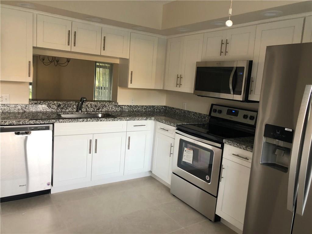 Very convenient 1st floor, move in ready, newest section in Century Village, tastefully remodeled unit, fully remodeled kitchen cabinets and granite counter tops, new S/S Whirlpool appliances, recessed kitchen lights, 20 X 20 Italian porcelain floors, new cabinetry in the bathrooms, walk in shower in the master bathroom, tiled screened patio, new blinds and fans. 1 assigned parking space with plenty of guest parking