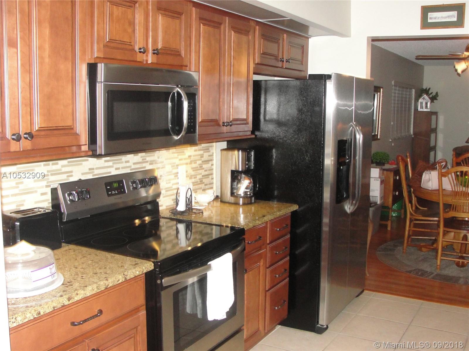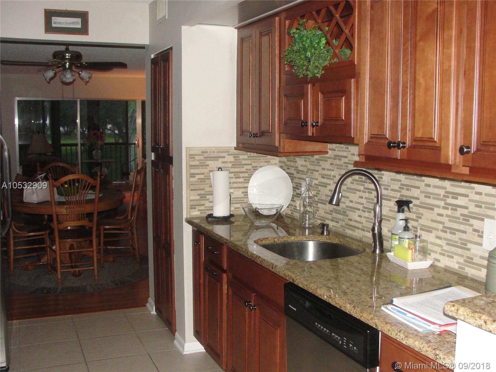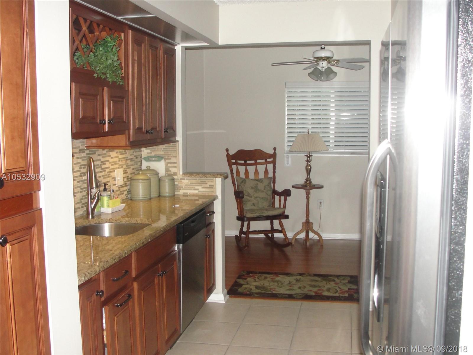 Absolutely stunning home in Century Village. Remodeled galley style kitchen with gorgeous wood cabinets, granite countertops and stainless steel appliances. Enter this lovely home in the open foyer leading to the breakfast/office area and living/dining rooms. Corner unit has extra windows to make this home light & bright. Enclosed patio with sliding doors over looking the treeline and one of the many pools in Century Village. 2 bedroom split floor plan. Rooms are spacious and have built in closets for lots of storage and organization. Master bath has a beautiful double vanity, mirrors, shower and private toilet. 2nd bath has an updated wood and granite vanity, tub and shower. Close to all shopping and highways, shuttle buses to local areas, lots of amenities.