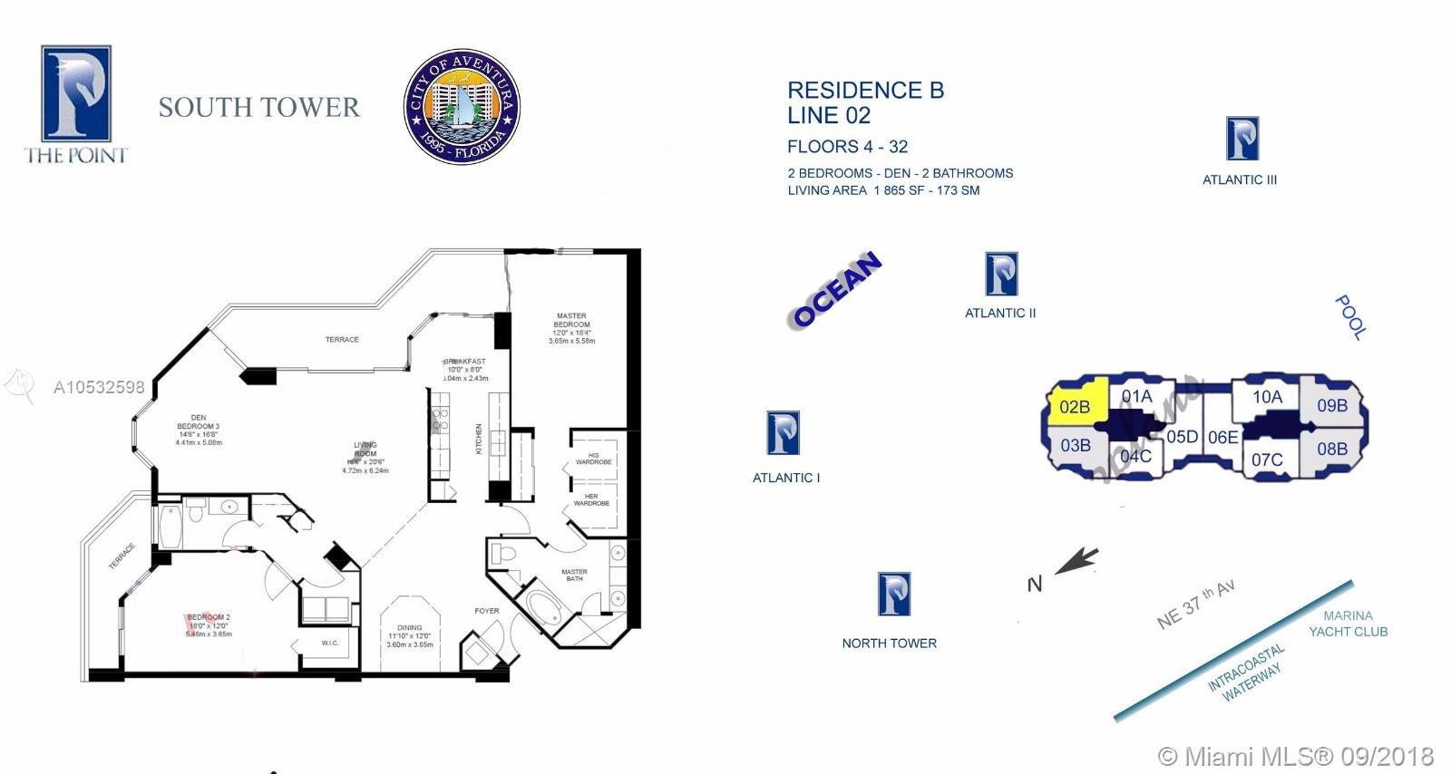 Come and live in one of the most desired communities in Aventura: THE POINT. Elegant, exclusive and recently finished a multi-million dollar renovation by the renowned designer Steven G. Full of amenities and private 3-level Spa and Club, right in front of the Waterways Marina. Conveniently situated a couple of blocks away from the Aventura Mall, shops and restaurants. This beautiful condo has all marble floors and granite counter tops in kitchen and bathrooms. Large balcony overlooking the ocean. Best price on a 2 bedroom unit in this high. Setup an appointment today.