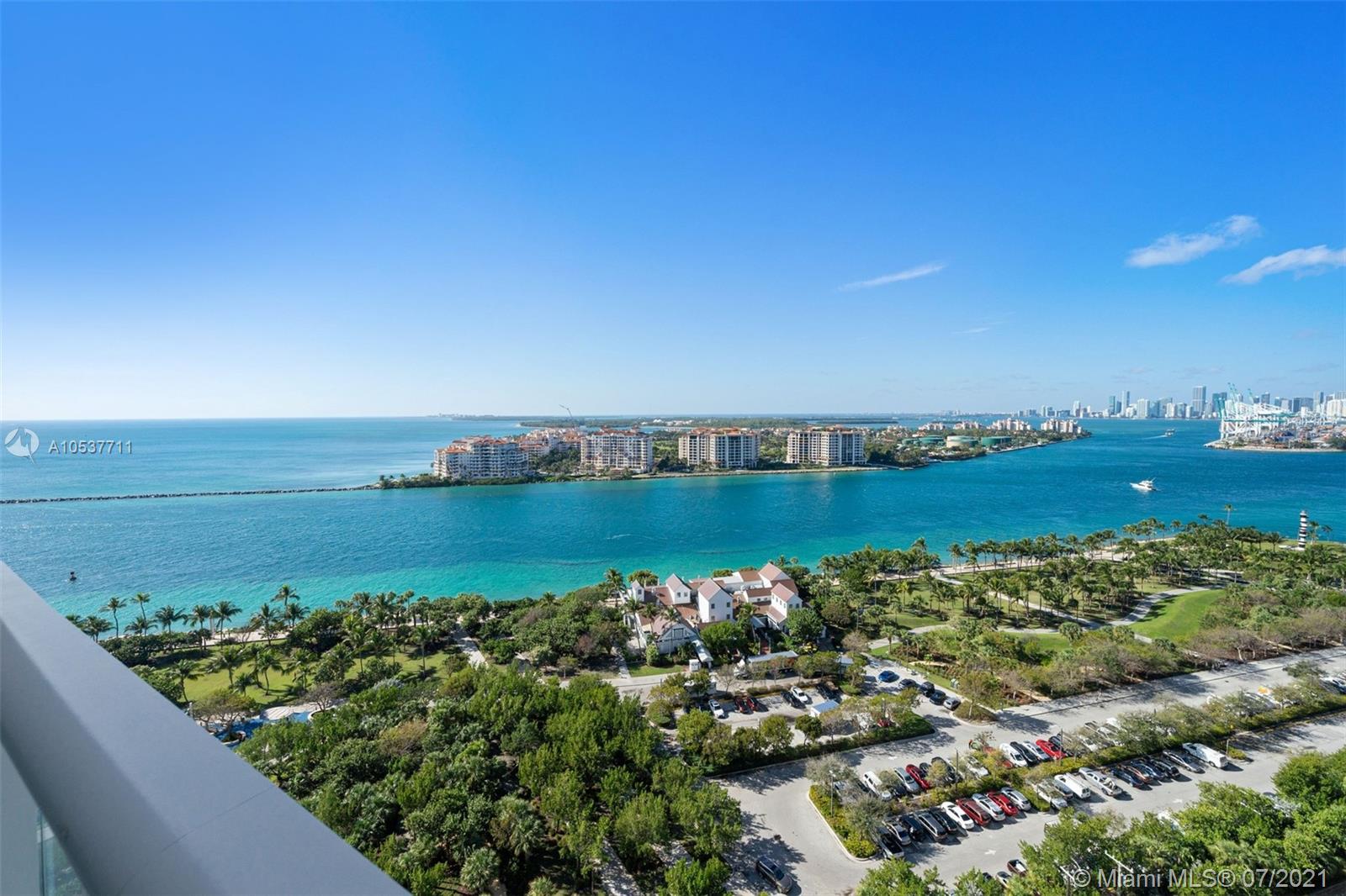 Largest 1 bedroom floor plan in the building. Offering spectacular views of Biscayne Bay, Downtown Miami skyline, and Government Cut to watch the boats and cruise ships sail by. Private balcony. Full service luxury building with exclusive full-service beach club with direct access from property, 2 lagoon style pools, 3 Har-tru tennis courts, private restaurant, 3 story fitness and spa facility, security, concierge, valet and much more!