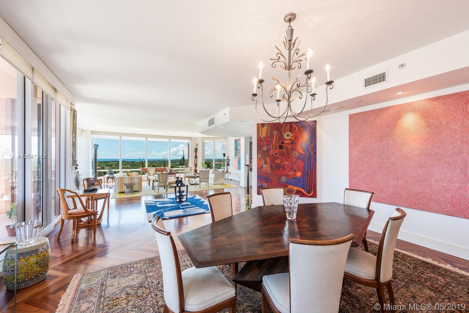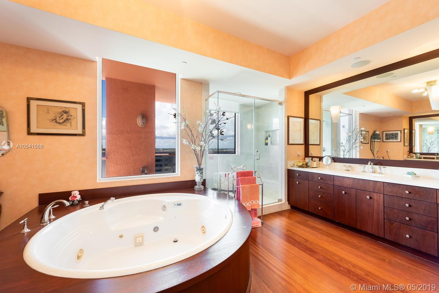 This mesmerizing Penthouse Level corner unit offers 180 degrees of direct water & city views!! The magnificent residence offers private elevator, parquet flooring, floor to ceiling impact windows throughout, 3 extensive and spacious balconies. Huge master wing with glass walls allowing you to experience another level of luxury. Kitchen features Bosch appliances, double oven, wine cooler, lots of storage space and breakfast area with water views and balcony access. This is the only “A” line unit available in the building!