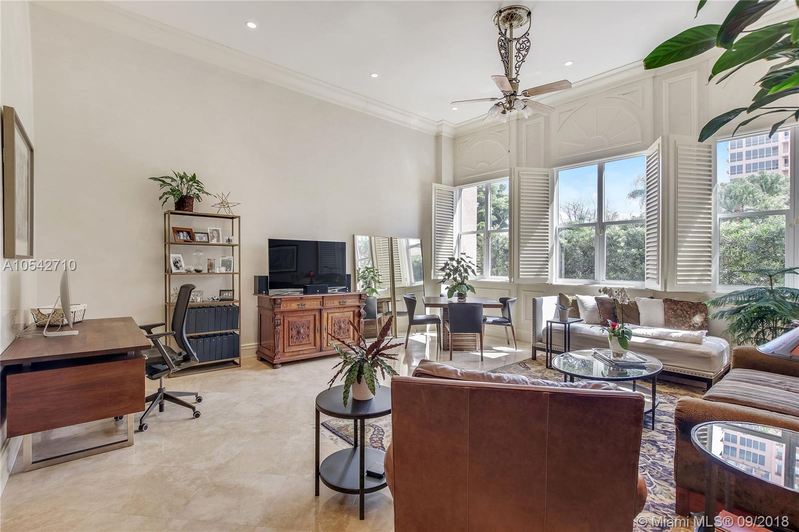 Lanai East is the only opportunity to own a unit in the prestigious GABLES CLUB for under a million dollars. This Coral Gables pied-a-terre is tailor-made for someone accustomed to luxury & looking for a foothold in the city. The unit boasts 16’ ceilings, Venetian plaster walls, marble floors &wainscoting, granite countertops, Viking & Dacor appliances, Phylrich faucets & solid core three panel doors thruout. The Gables Club amenities include a private restaurant, 4 clay tennis cts, spas, multiple fitness facilities, salon, access to sailboat docks adj. to Biscayne Bay with no bridges & a staff of 70 people to attend to your needs. The community has large, beautifully maintained private grounds close to Coconut Grove & the Old Cutler Road walking path. Don’t let the low price fool you!