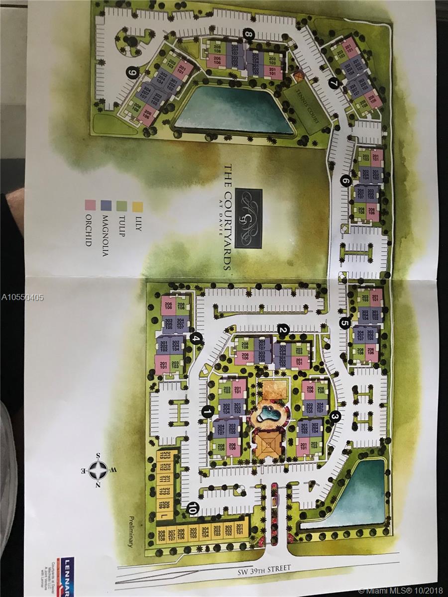Best location in the community! 1st floor, steps from pool, clubhouse, gym, parking. This updated bright & spacious corner unit features volume ceilings, new carpets in bed rooms, tiled t- out main living areas, tinted windows, prewired for alarm & audio, fire/sprinkler system t-out, SS appliances, newer kitchen cabinets & counter tops and master bath room. The magnolia is the largest model at the courtyards and features a split floor plan with 2 master bedrooms, washer & dryer. This resort style gated community features gym, heated pool, spa, tennis & volleyball courts, its centrally located across from Nova university & school and is pet friendly. Close to shopping malls, highways, restaurants and investor friendly - this is a great investment what more can you ask for !