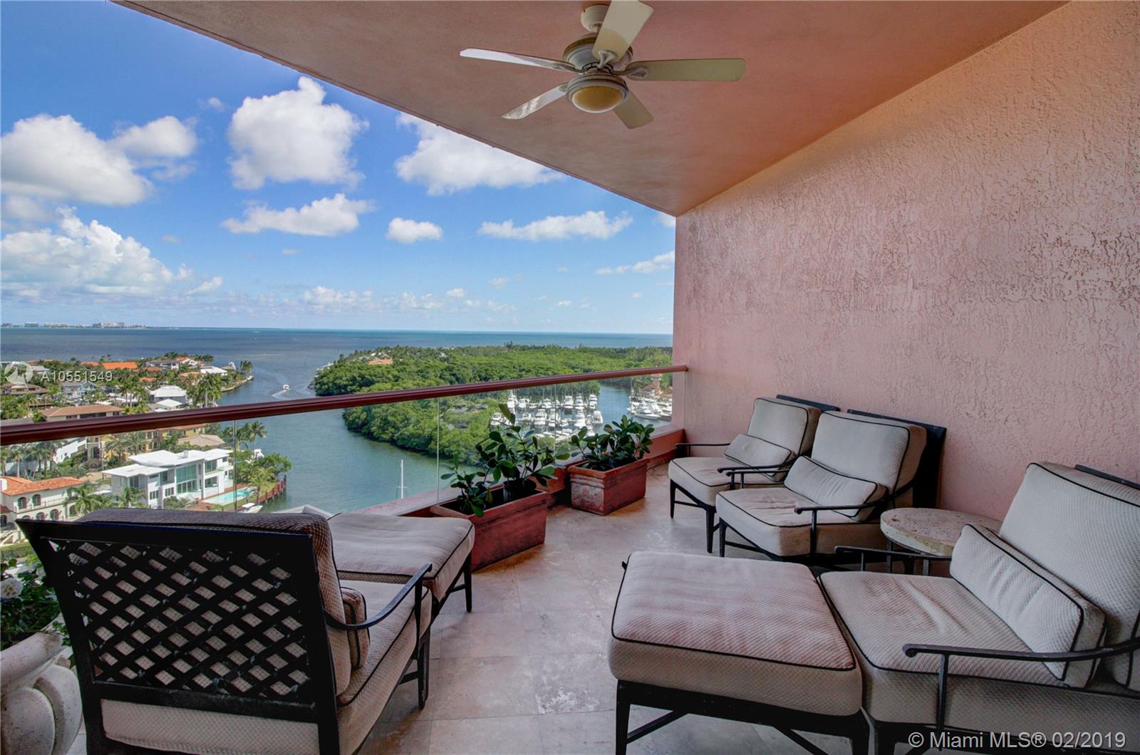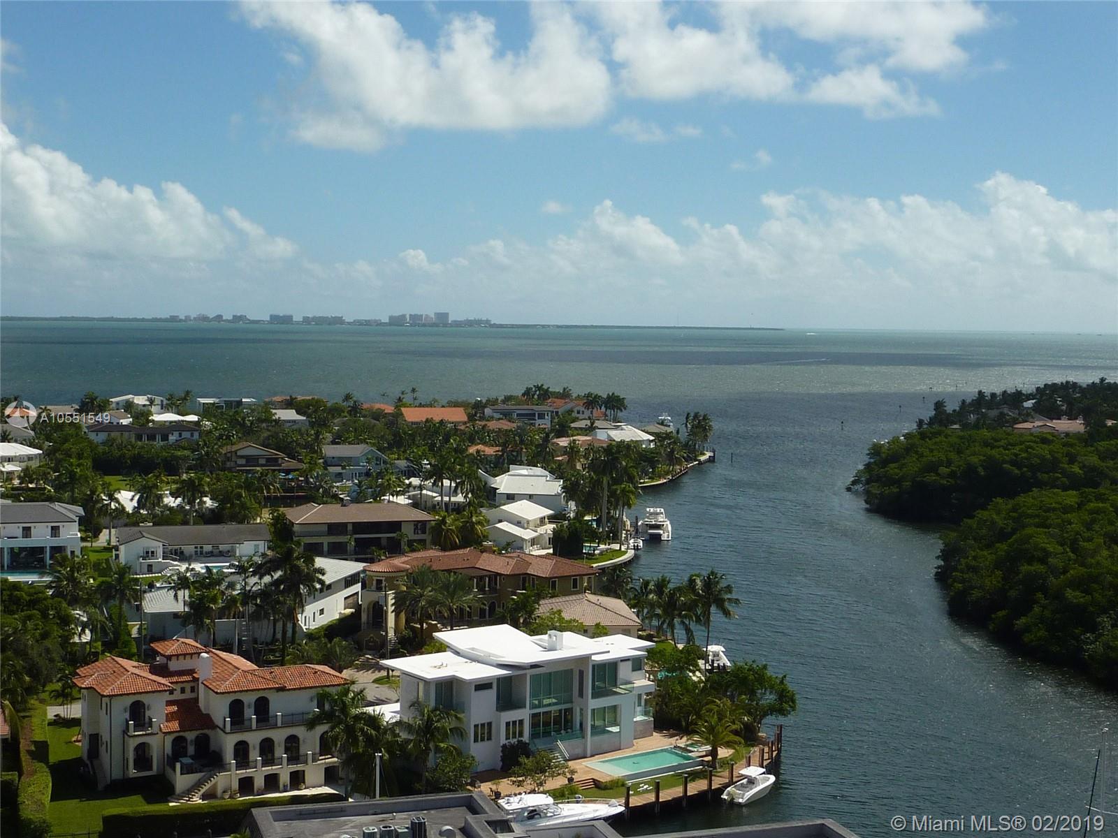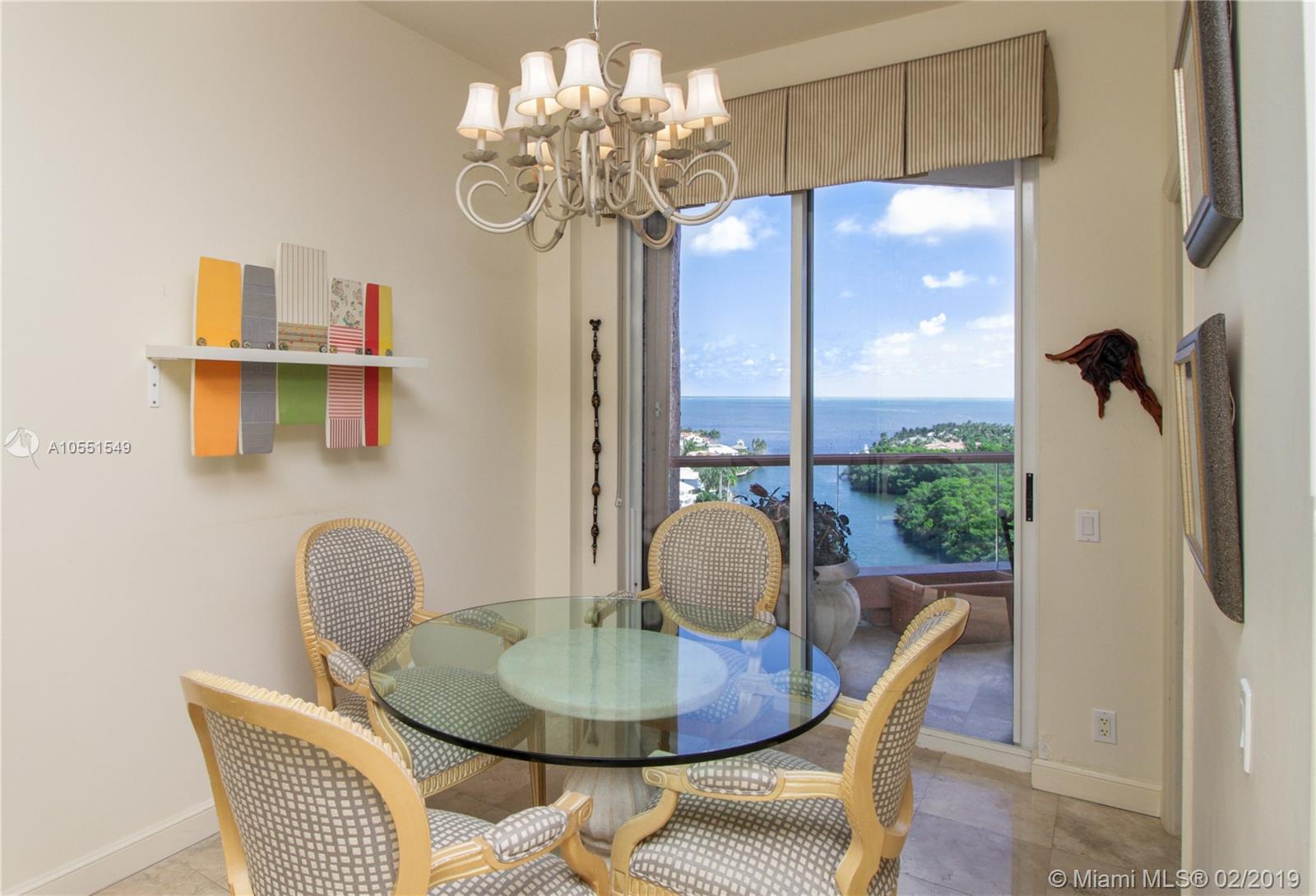 Step off your private elevator and marvel at the incredible uninterrupted views from currently highest available floor in the iconic Gables Club. Full service building includes guard gate, concierge, valet service, pools, tennis courts, spas with sauna and Jacuzzis, gym, card and meeting rooms, bar and restaurant and uninterrupted waterfront luxury. Floor plan includes breakfast room, huge living/dining, private foyer, 3 bedrooms each w/bath, and balcony access from every room. Easy access to Grove, Gables.