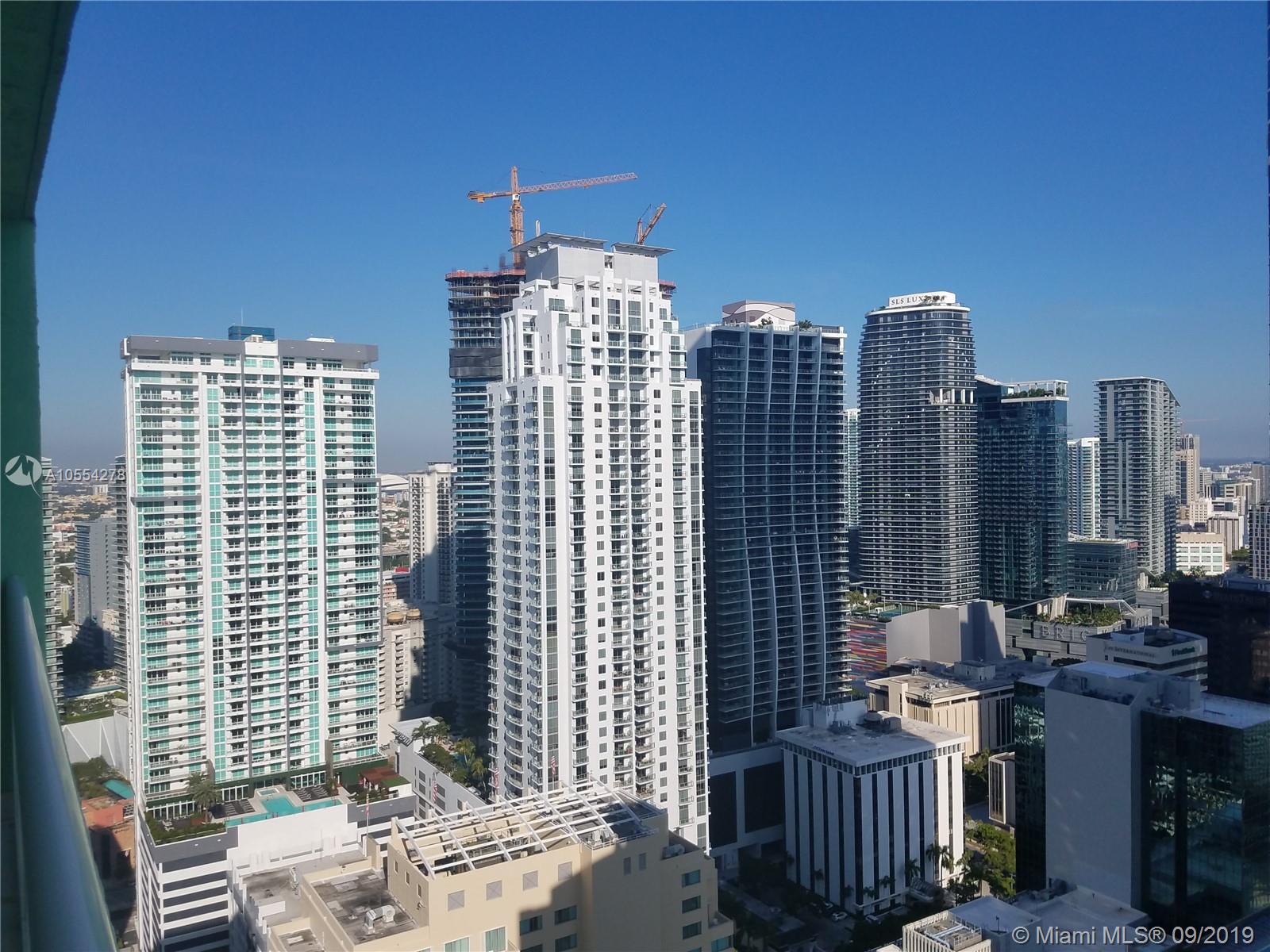 A true gem! Largest square foot unit in the building! 1595 SF (1245 int and 350 ext). Two BR 2 BA PLUS den/3rd BR w/closet. Extra wide oversized balconies - views of bay and city! Cable, super high-speed internet and water in HOA. Fully equipped kitchen with granite counter tops, SS appliances. Master suite with very spacious walk-in closet. Second bedroom with private balcony. Marble flooring. Washer/dryer in unit as well as guess laundry downstairs. Numerous amenities including swimming pools, jacuzzi, huge modern fitness center, steam rooms, community rooms. Near Brickell Key for picturesque neighborhood strolls! Sweeping views (unobstructable) of Biscayne Bay, Miami skyline. Sparkling city night lights. Seller will contribute $2,500 towards Buyer’s closing costs with full price offer.