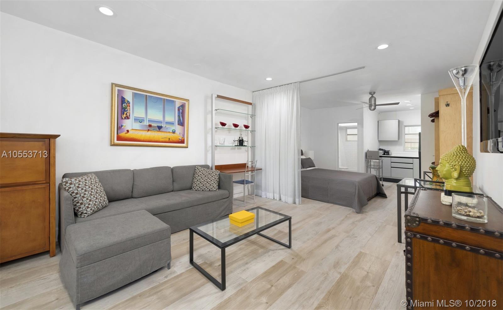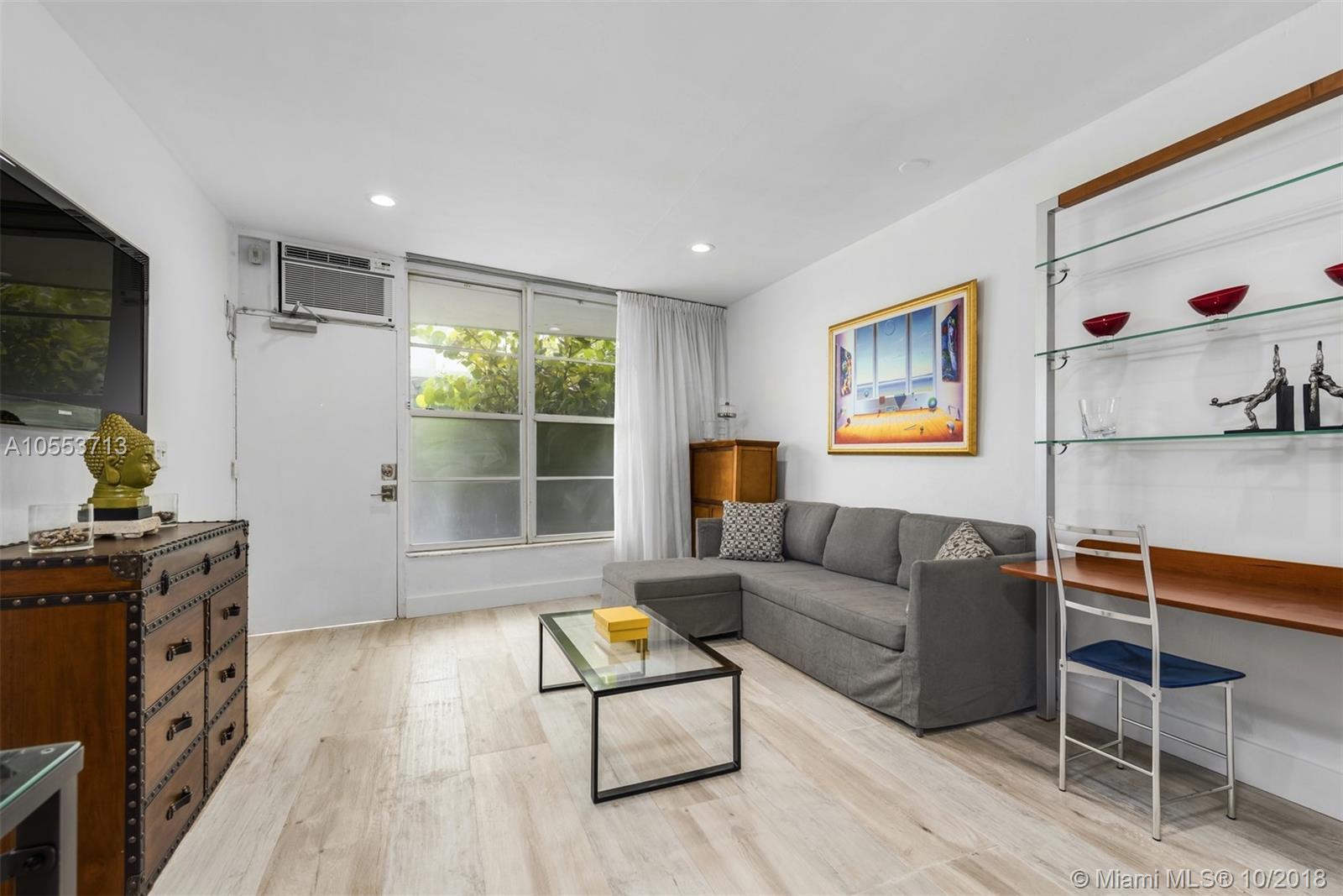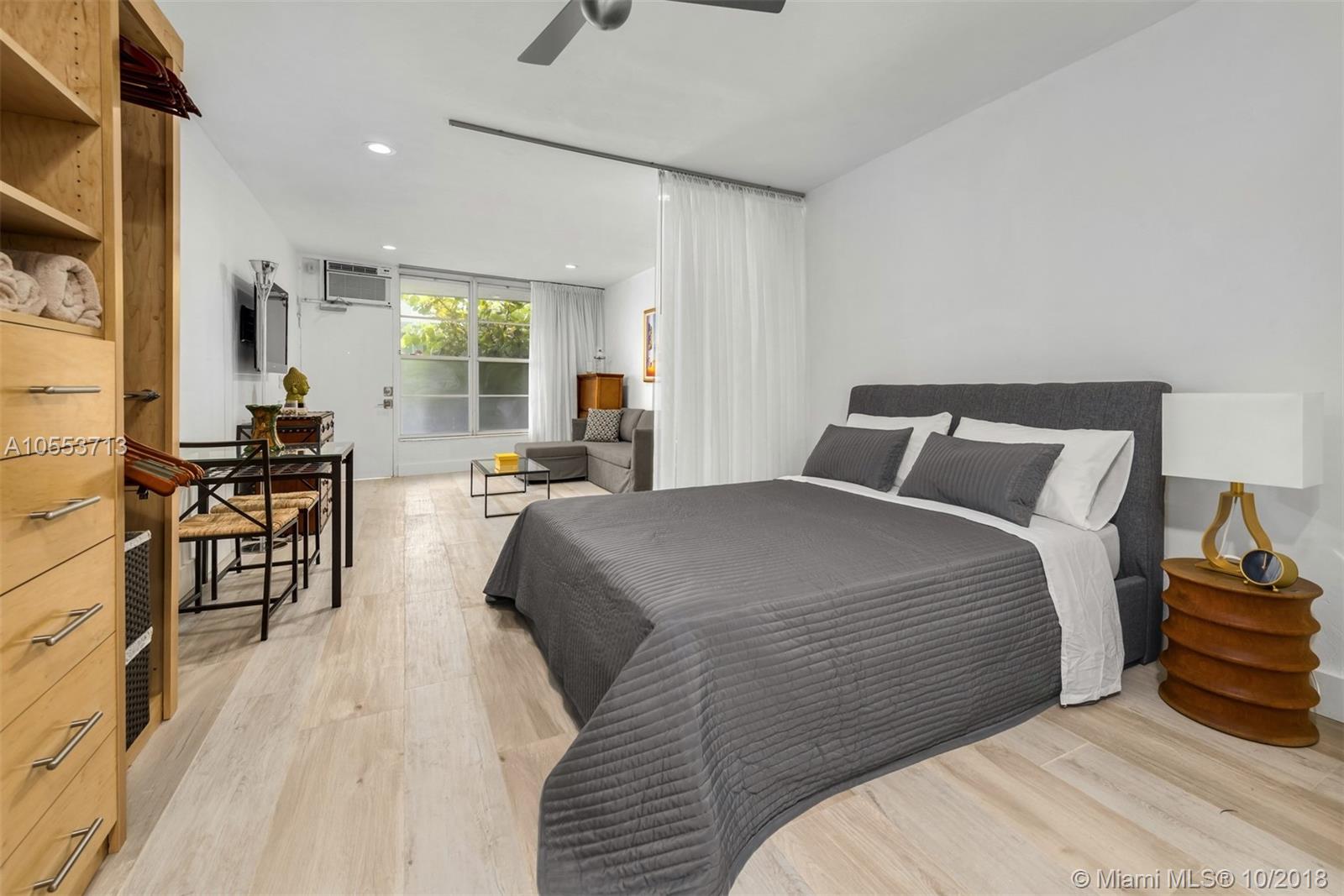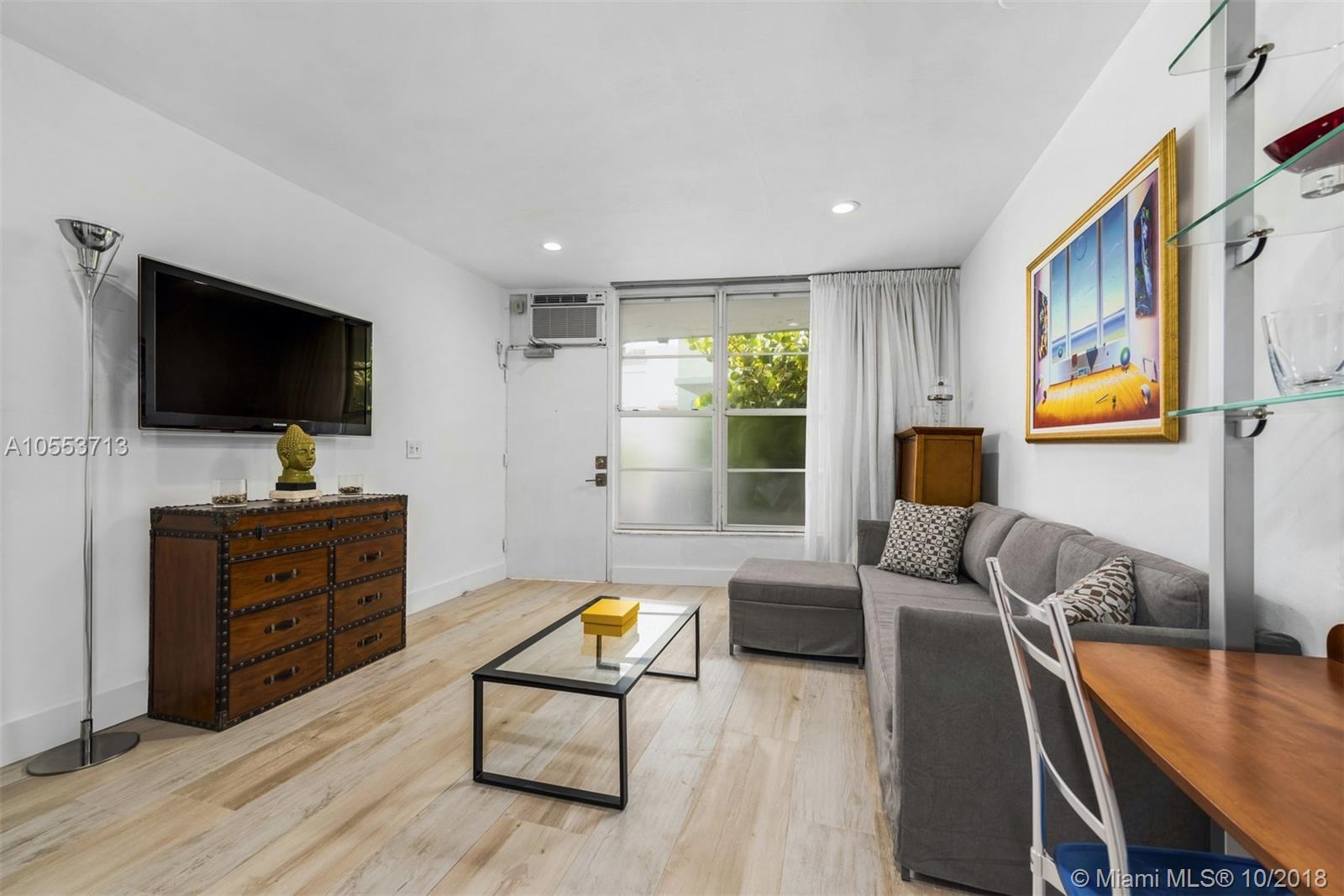 Nestled in South Beach where the Atlantic Ocean meets the world famous Ocean Drive is a beautiful turnkey fully renovated & stylish studio apartment. This unit is located in a charming complex with a sun deck & security entry, boasting new flooring, AC, shears with black out, all new furniture, linens, appliances and more! All in close proximity to restaurants, shops, beach, entertainment & more.