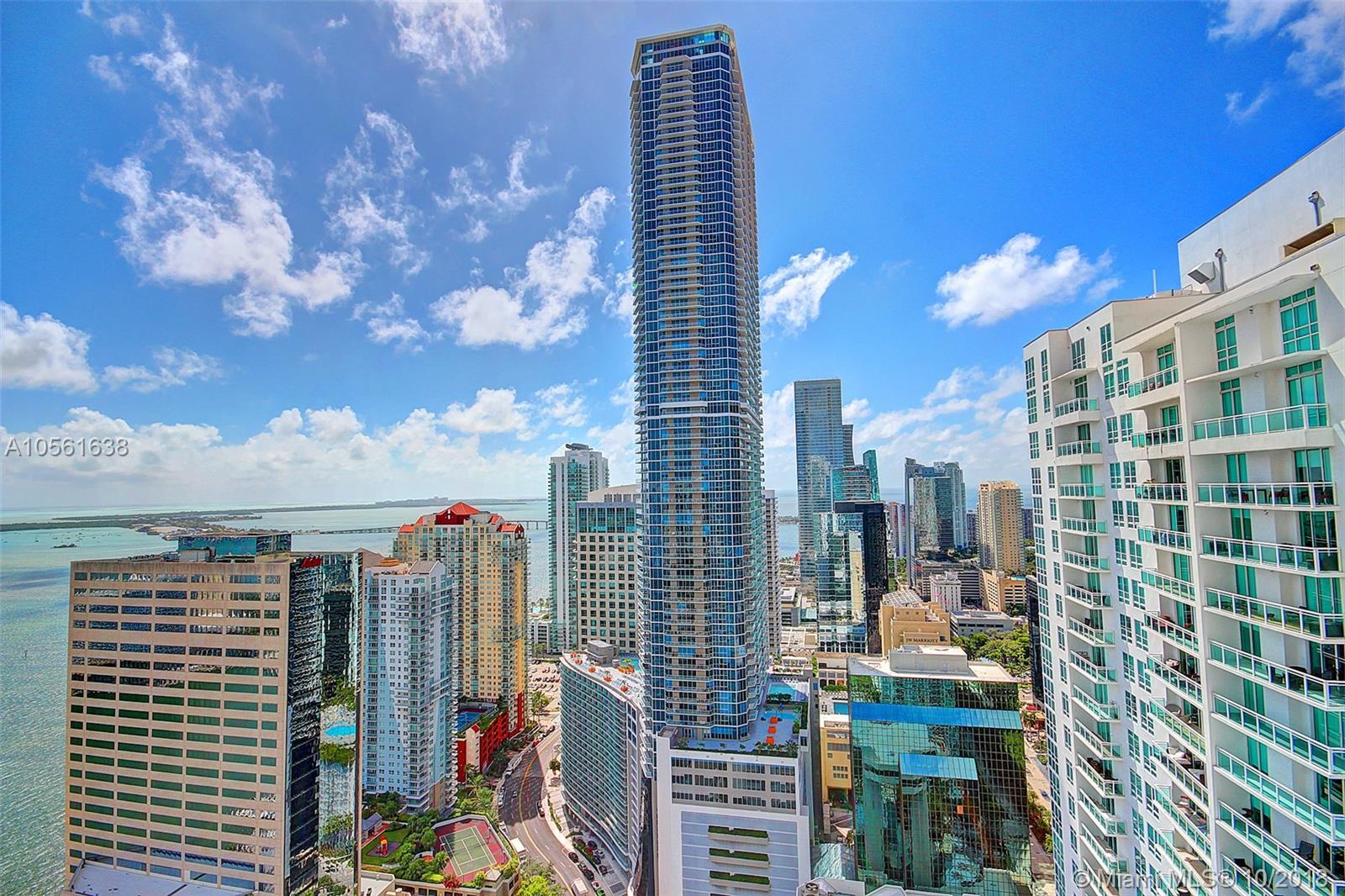 Designer upgraded and fully-furnished Lower Penthouse at Plaza with soaring 11 ft ceilings and views of the Biscayne Bay! High above the Brickell Bay skyline, this unit is turn-key, including upgraded kitchen appliances, porcelain flooring, custom light-fixtures, built-in storage and entertainment system, custom closets, glass shower enclosures, and full length vanity mirrors. Freshly painted. Plaza has lowest maintenance fees per square foot in the Brickell neighborhood for buildings that have a pool. Amenities include two pools, jacuzzi, recently updated gym with sauna, media room, conference room, zen-garden, 24-7 concierge, valet, and a brand-new lobby. One block from Brickell City Centre, Mary Brickell Village. Half block from Metro Mover station. All furnishings included in price!