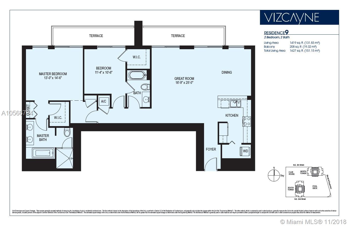Spacious 2-Bed/2-Bath condo in the South Tower at Vizcayne in the epicenter of Downtown Miami offering spectacular skyline views and amenities. This unit offers 1,419 SF of interior living space with beautiful wood-grained porcelain flooring, hurricane-impact windows, kitchen with granite countertops and stainless-steel appliances, in-unit washer/dryer and a master suite featuring walk-in closet and spa-like bathroom with dual sink vanity, marble countertops/flooring/wet walls, soaking tub and separate glass-enclosed shower. Vizcayne offers resort-style amenities including 4 swimming pools, state-of-the-art fitness center, full-service wellness spa and club room.