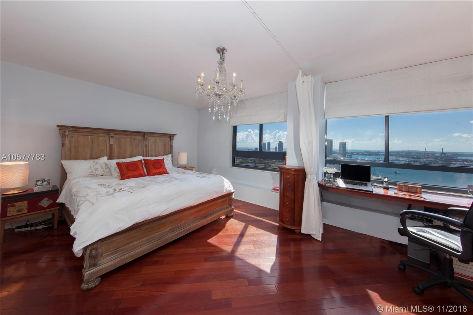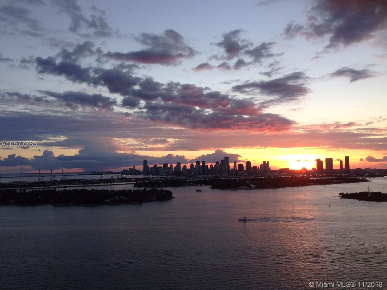 Endless water views from all rooms on 26th floor! Enjoy daily sunsets over downtown Miami skyline & Biscayne Bay. Renovated, Spacious, custom walk-in closets, full size W/D unit, SS appliances, Brazilian cherry wood floors & travertine marble in bathrooms, kitchen & balcony. Nest thermostat, Fitness Center, Bay View Party Room, Pool, Hot tub, Sand Volleyball, 24hr Security, Walk To Whole Foods, Beach, Lincoln Road Shops, Cafes, Movies & Nightlife. Prime assigned Parking Spot on first floor, Cable tv & Internet included in maintenence fee. Pet Friendly. Easy to show.
