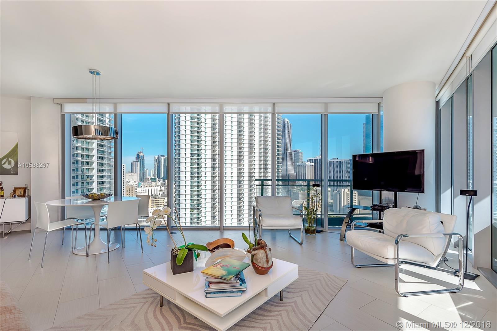 Architecture done by Luis Revuelta. A complete work of Art. This building is equipped with exclusive amenities such as pool, spa, gym , recreation area for your guests as well a beautiful party room. Exquisite modern yet warm tastefully designed. This apartment is one of a kind consists of 3 Bedrooms, 3 Full Baths with the luxury of high 13 ft ceilings. Sit back and relax in your own living room with 180* water and city views from your own living room. LOCATED ON THE MIAMI RIVER JUST STEPS AWAY FROM BRICKELL FINANCIAL DISTRICT, Mary Brickell Village, and minutes from Coconut Grove and Miami Beach.