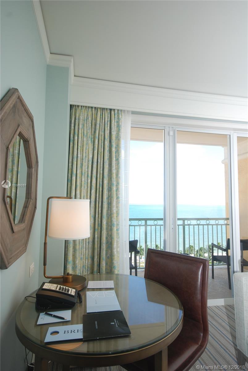 Ocean front studio with a balcony at The Ritz-Carlton in Key Biscayne. This property has been hotel renovated so it can be placed in the hotel rental program. The building has had a multi million dollar renovation offering new state of the art restaurant with views to the ocean, along with (2) beach side restaurants and an in house cafe. Hotel amenities include concierge service, valet, gym, tennis, spa, beach service and more. Enjoy the use of this 5 diamond resort property while the hotel manages it when you are away.