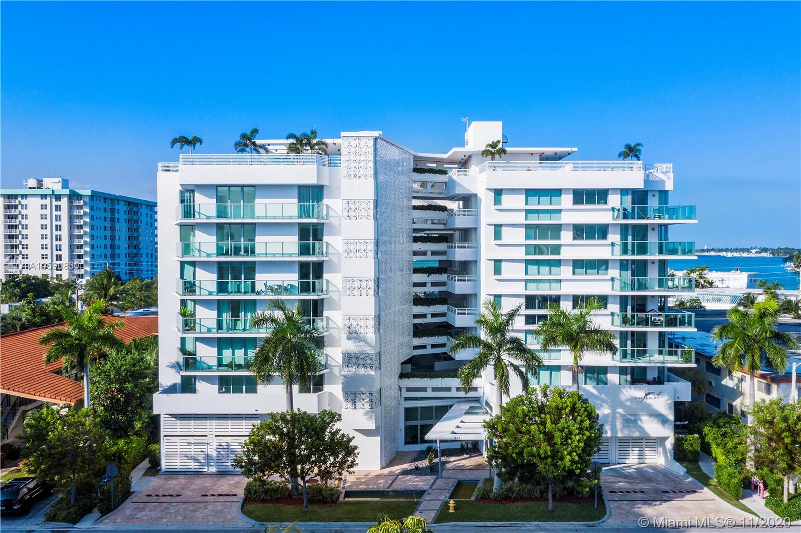 Brand new boutique style building in Bay Harbor Islands. Unit has 2 bedrooms and 2 bathrooms. Offers stainless steel appliances, tile throughout, washer and dryer inside, impact windows and wine cooler. Gorgeous views from the rooftop infinity pool and hot tub. Unit comes with 2 parking spaces (#79, #80). Walking distance to shopping, places of worship, and A+ Bay Harbor K-8 Education Center. Great for investment opportunity. Unit is currently rented through April 30,2021 at $2,800 per Month. 24 hour notice needed for showing.