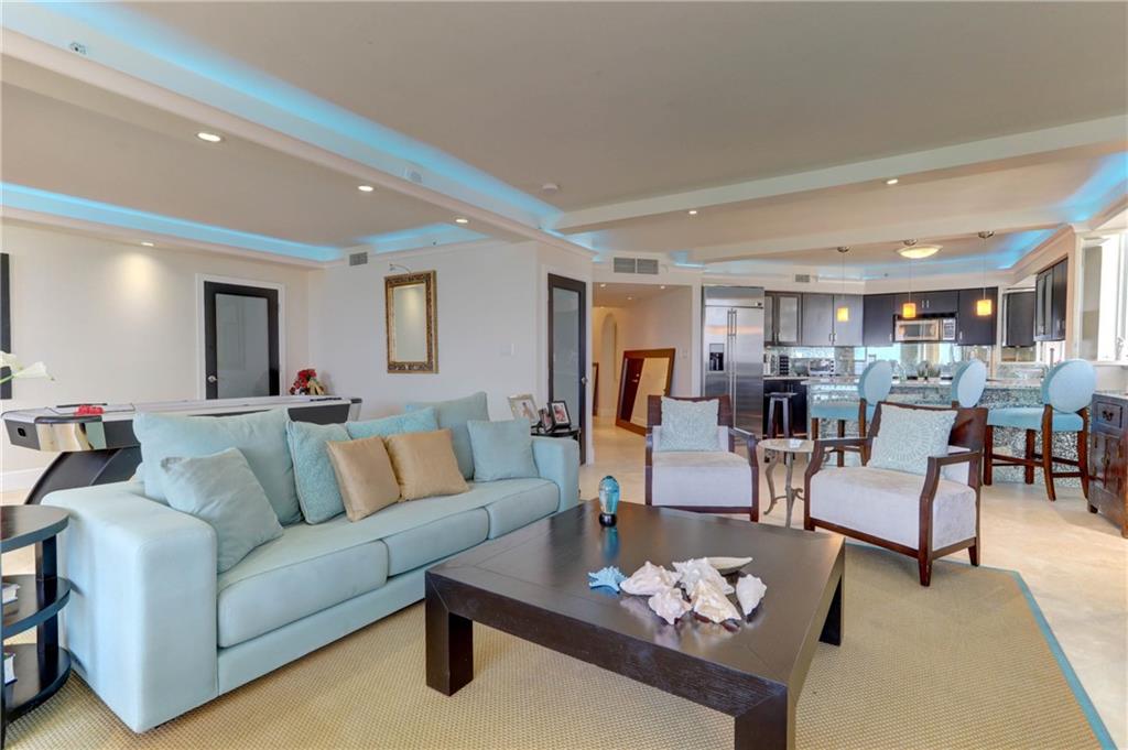NE corner unit w/Direct Ocean View & Wraparound Terrace. Saturnia Marble Floors in the entire unit. (Renovated 2011) New Vetrazzo Chef’s Kitchen/High End Stainless Appliances, large pantry & deep sink, new baths, crown molding, LED Lighting, BOSE Stereo System, Full Laundry Room, Plenty of Closets, 2 Garage Parking Spaces, Dual Master Suites w/ private terraces. Private Beach Club on Sand w/ pool/ Jacuzzi, Private Cabanas for Sale. 24 hr valet, Gym, Sports Lounge. 2 large dogs OK, can rent 3X /yr. 3-month min, Reserves in Budget, Conventional Loans OK. 3rd bedroom wall open for large living room/formal dining room or bonus room.
